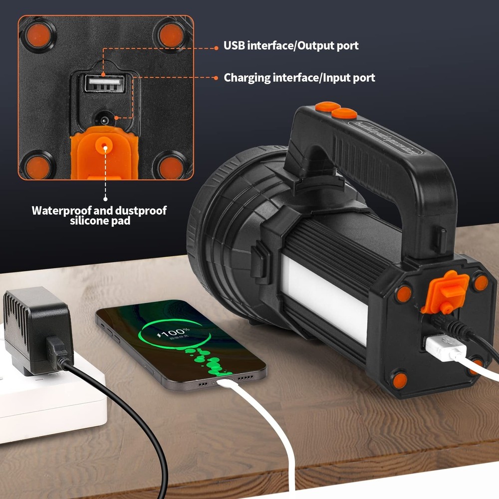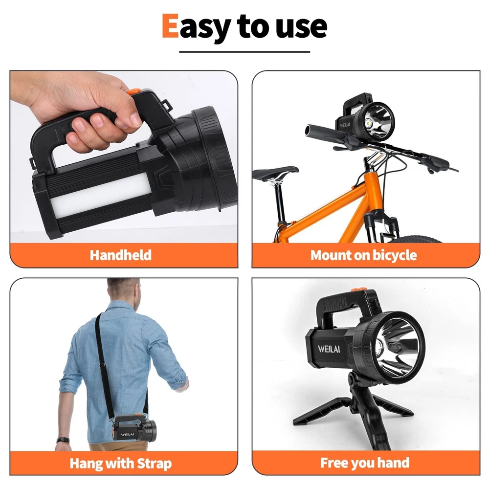 WEILAI Superbright USB Rechargeable LED Spotlight Handheld Searchlight Flashlight