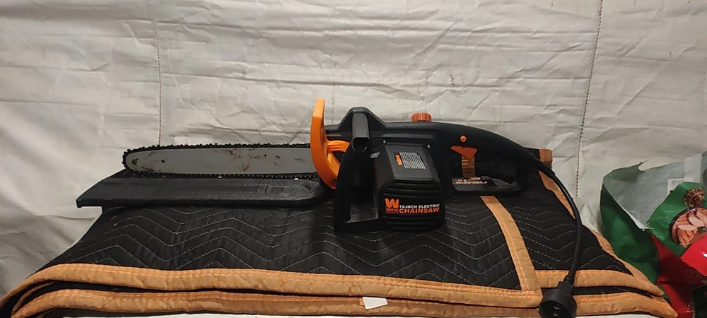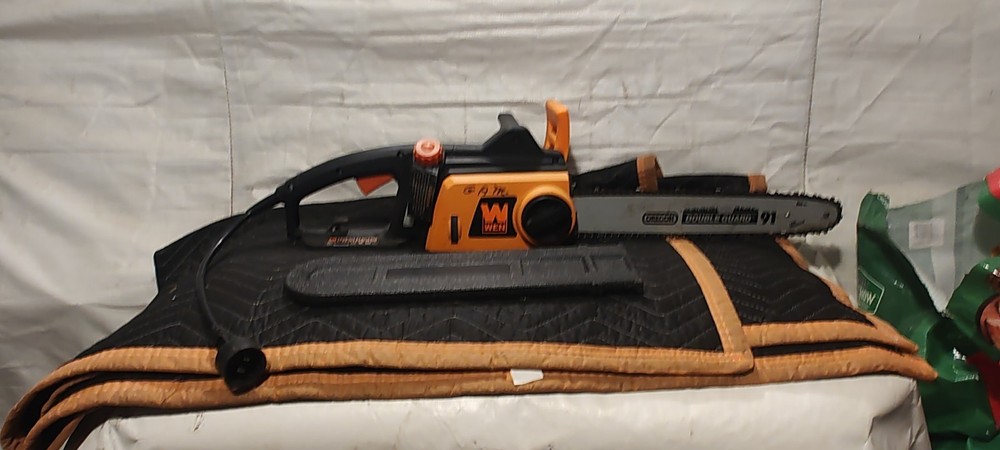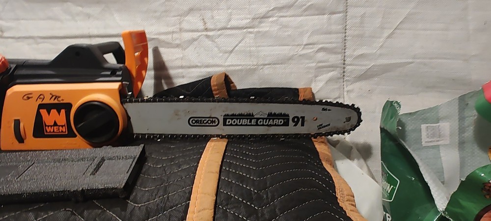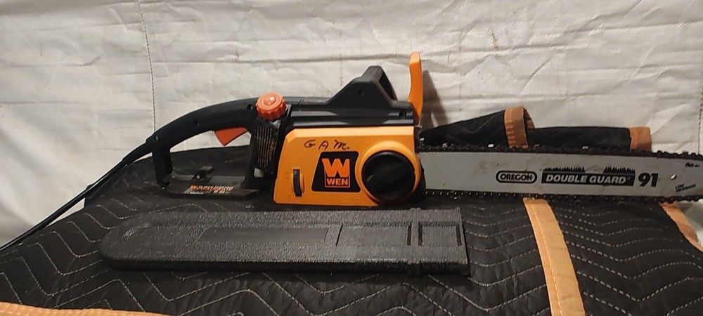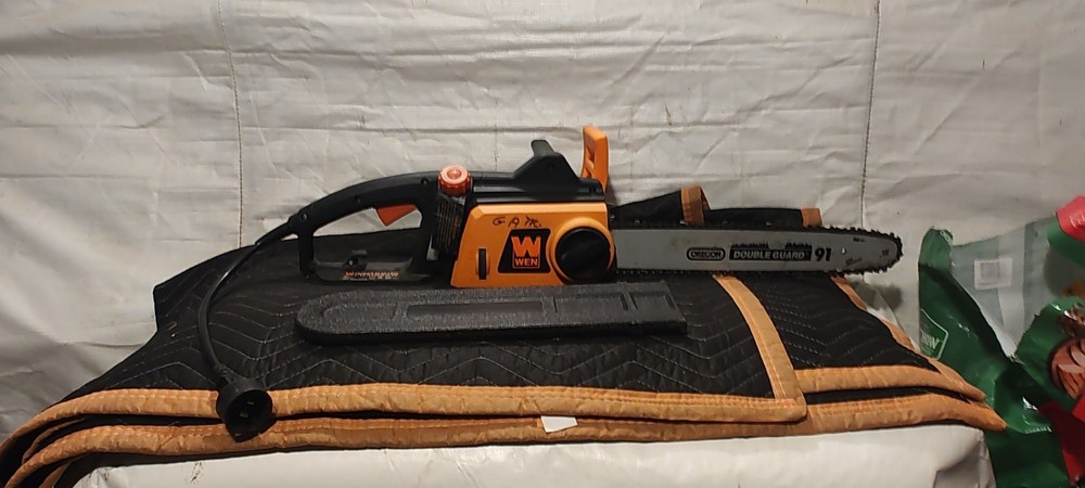 This powerful electric chainsaw from Wen is the perfect tool for heavy-duty wood cutting tasks. With a 12 amp power source, it can easily cut through trees, bushes, and branches with its 16-inch blade. Its corded electric design ensures that you always have the power you need to get the job done. This chainsaw is ideal for outdoor power equipment enthusiasts who need a reliable and efficient tool for their gardening and outdoor living needs. Its model number is ken11-4017, and it has an item length of 16 inches. With its heavy-duty construction and powerful motor, this chainsaw is sure to become a valuable addition to your toolkit.sells in used condition some dust and wear marks tested runs strong please view the photos