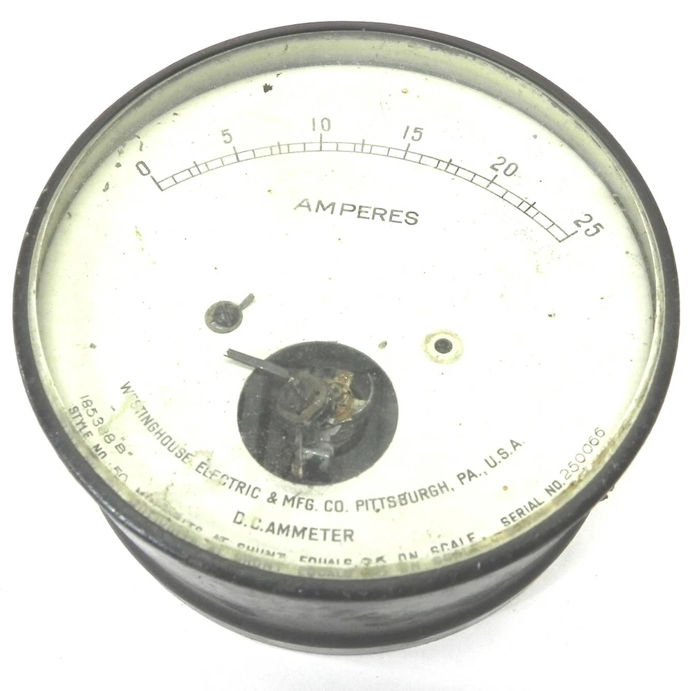 WESTINGHOUSE VINTAGE AMPERES AMP GAUGE FOR PARTS BEZELED GLASS LARGE 4-3/4" OD X 2-1/4" THICK WESTINGHOUSE VINTAGE AMPERES AMP GAUGE FOR PARTS BEZELED GLASS LARGE 4-3/4" OD See photos below for details. ABOUT US Jones Vintage Parts has been a family-owned business for over 40 years. We specialize in rare and vintage NOS and used parts for all makes and models from the teens to the 70s. We're passionate about uncovering and restoring the stories of the treasures from your grandparents and great grandparents history. We believe in breathing new life into the world's first modes of transportation. New vintage all the time! SHIPPING INFORMATION Purchased items will generally ship Monday through Friday, within 3 days via USPS Flat Rate or First Class upon payment receipt. Larger items will be shipped via FedEx Ground or UPS. Multiple same-day purchases will be combined for discounted shipping (request a revised invoice to receive bulk shipping discount or notify us of future purchases). International shipping also available. RETURN POLICY Our goal is your satisfaction. If you are unhappy with your order for any reason items may be returned for parts credit within three (3) days of receipt, and you will be charged a 10% restocking fee. There are no shipping refunds. Exchanges will be billed appropriate freight. All return items must be complete, undamaged, unaltered and in resale condition. You may be interested in our other eBay listings . Powered by SixBit's eCommerce Solution