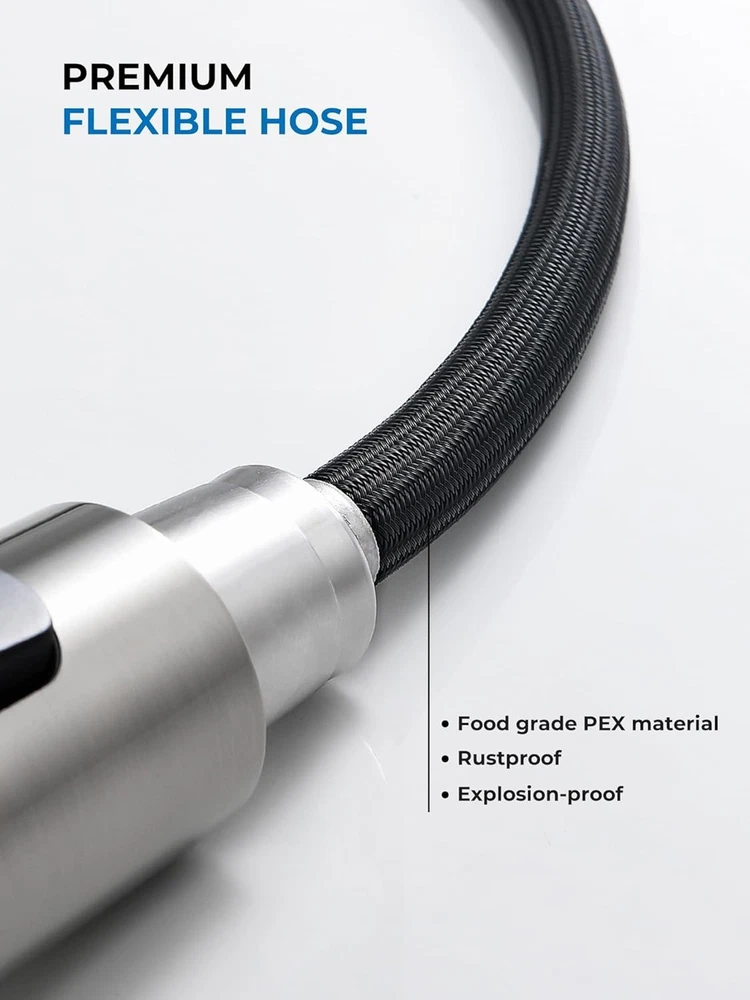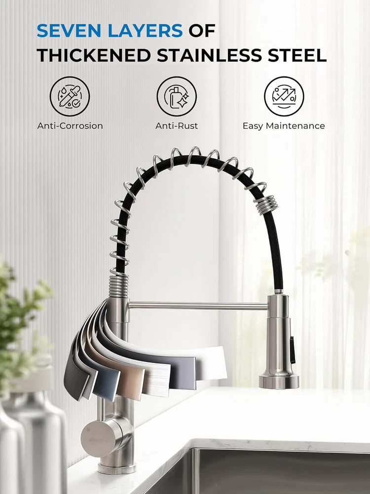 WEWE Kitchen Sink Faucet, Faucets with Pull Down 2 Brushed Nickel Product Details Brand: WEWE Recommended Uses For Product: Kitchen Mounting Type: Deck Mount Finish Type: Brushed Material: Stainless Steel Color: 2 Brushed Nickel Number of Handles: 1 Included Components: Kitchen faucet, Mounting accessory, Weight, Instruction manual Hole Count: 1 Special Feature: Pull Down Sprayer, 360 Swivel Handle Type: Lever Style: 2 Pull Out Installation Type: Single Hole Maximum Flow Rate: 1.8 Gallons Per Minute Valve Type: Disc Valve Model Name: WEWE Kitchen Sink Faucet Number of Pieces: 1 Handle Material: Metal Spout Height: 4.6 Inches Spout Reach: 9.8 Inches Item Weight: 4.1 Pounds Handle Location: Left/Center/Right Spout Design: Pull Out Hose Length: 23.6 Inches Is Electric: No Manufacturer: Aonecer Part Number: A90190502BN Item Weight: 4.06 pounds Package Dimensions: 16.69 x 13.11 x 2.52 inches Item model number: A8056-07-05CP Finish: Brushed Shape: Gooseneck Item Package Quantity: 1 Special Features: Pull Down Sprayer, 360 Swivel Batteries Included?: No Batteries Required?: No Brand: WEWE Recommended Uses For Product: Kitchen Mounting Type: Deck Mount Finish Type: Brushed Material: Stainless Steel Color: 2 Brushed Nickel Number of Handles: 1 Included Components: Kitchen faucet, Mounting accessory, Weight, Instruction manual Hole Count: 1 Special Feature: Pull Down Sprayer, 360 Swivel Ease of Use: The pull down kitchen faucet can be extended to maximum pull out length 23.6 inches, meets your requirement for a larger cleaning area. You can fill the water or do some cleaning outside the kitchen sink. 360°Swivel: 360 degree rotating spout can be easily move smoothly, which is suitable for double sink. You can use the brushed nickel kitchen faucet in different directions of the sink for different tasks, without moving your feet all the time. Dual Functions: Different water mode functions of the kitchen faucets with pull down sprayer can fulfill different tasks requirement. The high quality nozzle of kitchen faucet offers aerated stream for cleaning and non-splash powerful spray for rinsing, just enjoy your kitchen with this commercial kitchen faucet. Safe Sink Faucet: This kitchen faucet with sprayer is designed specially that cold water comes out when pulling forward, is more safer comparing to most water faucet in the market. CARE MUCH MORE FOR YOUR SAFETY, especially for CHILDREN! A Perfect Fit Kitchen Sink Faucet: Your faucets for kitchen sink with commercial style spring design and the compact height 17”, can easily matches all decorating style and place, such as farmhouse kitchen faucet, rv kitchen faucet, laundry faucet, camper kitchen faucet.