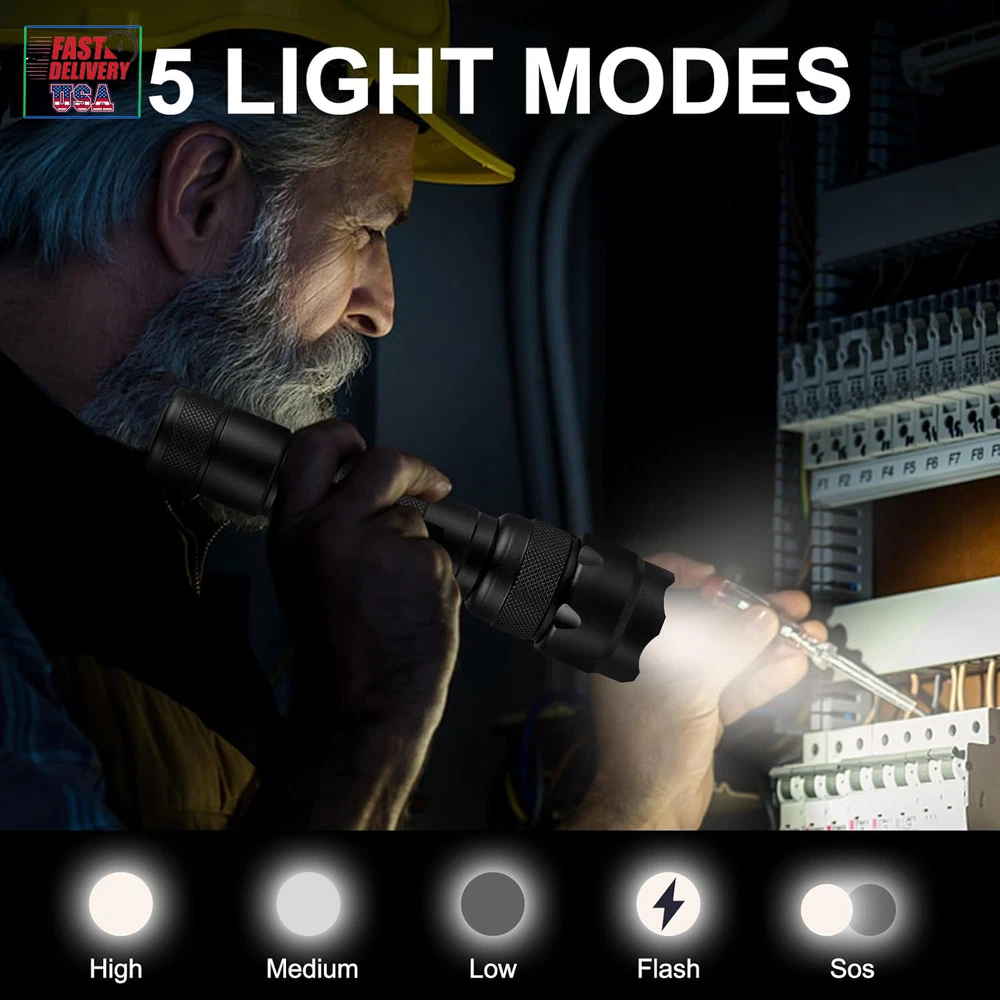 WF-502B LED Tactical Flashlight, 5 Modes 1000 High Lumens Flashlight Torch with
