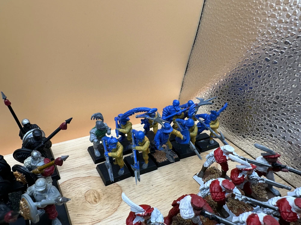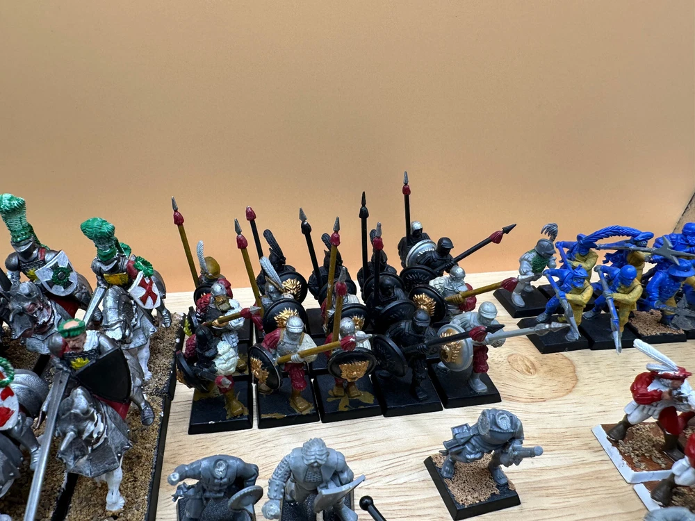 WFB Old World Warhammer Empire Starter Army Games Workshop OOP GW Reiksguard 1 x Mounted Standard 1 x Mounted Captain 1 x Mounted Wizard (Converted Balthasar Gelt) 2 x Great Cannon & 6 Crew (Need Parts) 10 x Reiksguard Knights 15 x Swordsmen 10 x Handgunners 16 x Spearmen 10 x Halbediers (Need Parts) (Some items may need TLC/Parts; See Photos)