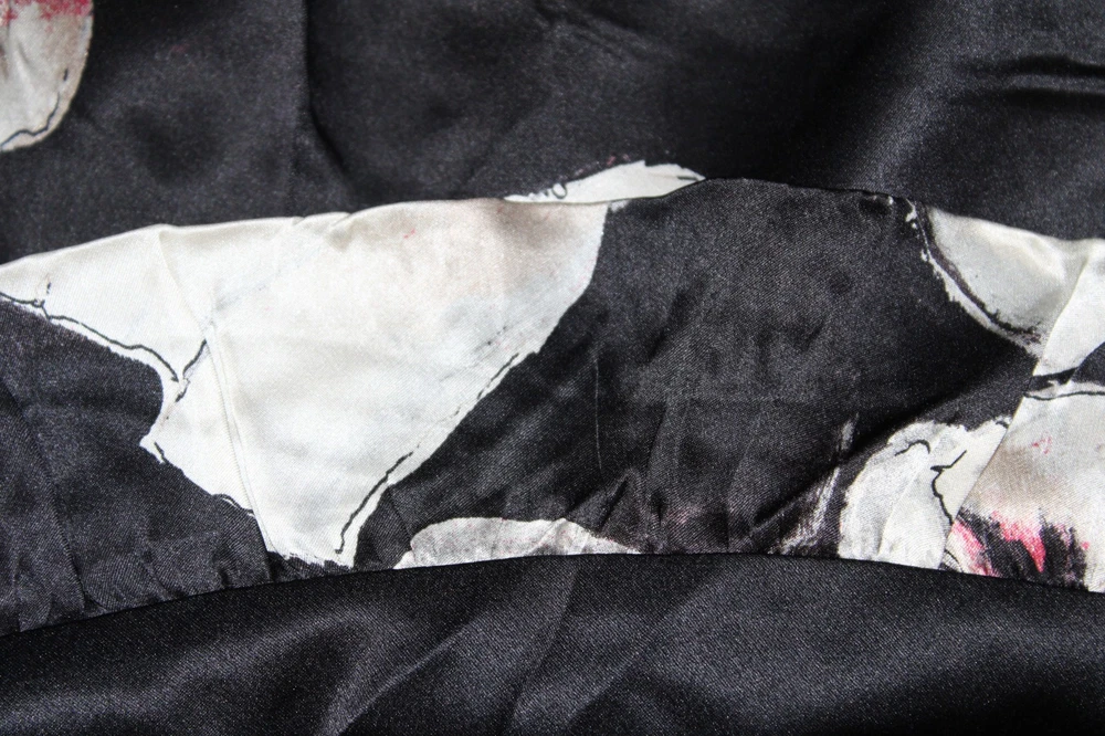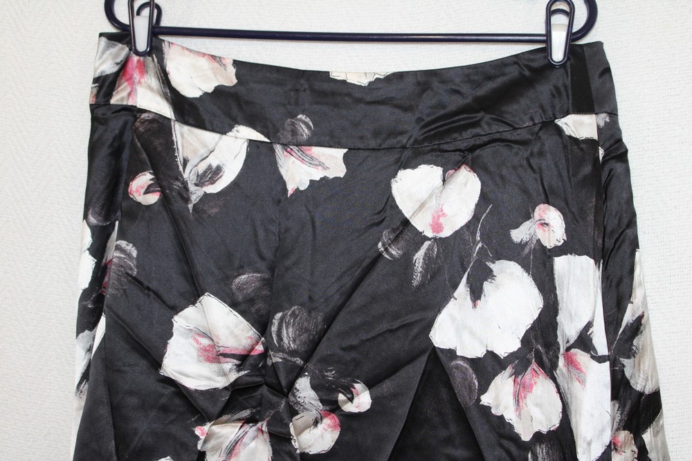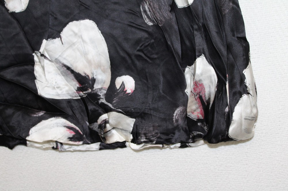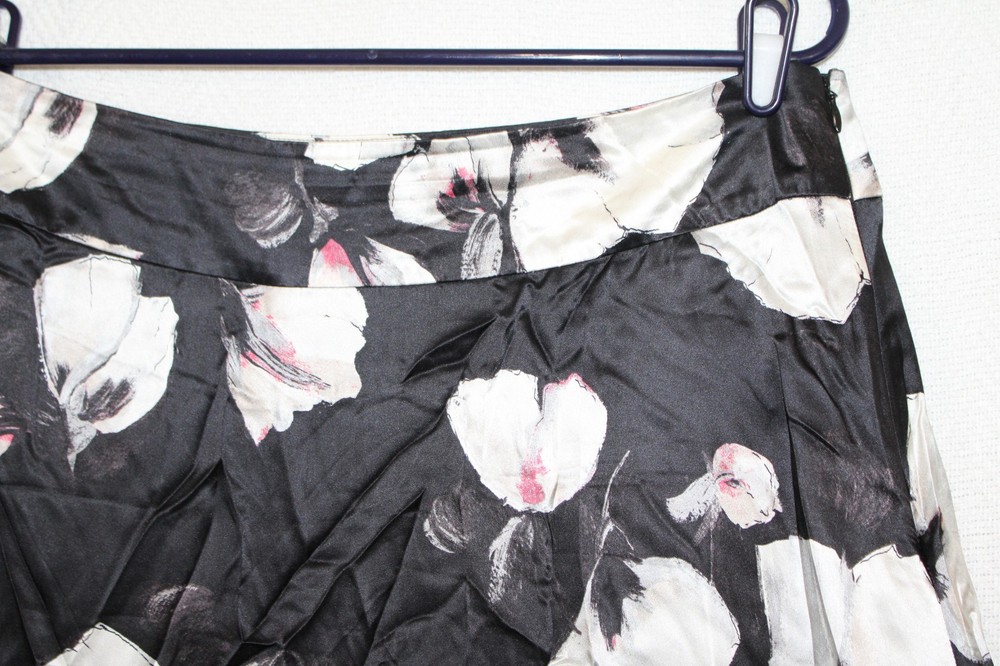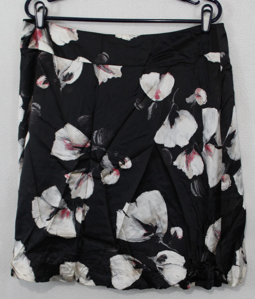 WHBM Size 14 Black Floral Silk A-Line Skirt with Lined Bubble Hem