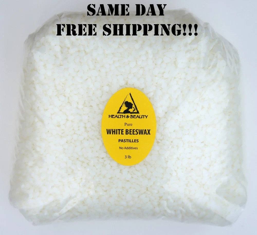 BEESWAX BEES WAX ORGANIC PASTILLES WHITE PURE Beeswax helps improve consistency in body care products. Beeswax is excellent for making candles. Our White Beeswax Pastilles are cosmetic grade beeswax that have been decolorized and filtered to remove any impurities and then shaped into small pellets for easy use. These Beeswax Pastilles are 100% natural and are refined through physical processes – nothing chemical. The color may vary from white to off white with a mild, honey aroma. These are used in formulations where the end product is white in color. Color and fragrance can later be added. Beeswax Pastilles are great in lotions, creams, balms, body butter and even soaps. It provides body and stiffness to formulations and acts as an emulsifier. In Candle making, all natural beeswax burns cleaner and longer than petroleum-based paraffin waxes. There's no smoking since there is no petroleum burning in the candles. Made from 100% pure refined beeswax, this slow burning wax can be used pure and should be considered when making aromatherapy grade candles. We are buying our product from organic certified supplier, made with organic ingredients. FREE SHIPPING WITH FREE TRACKING NUMBER FOR ALL ITEMS Your item(s) will be shipped the same business day or next business day of confirmation of payment if received by 3:00 pm PST. (not including weekends or holidays). When you receive your item and are pleased with our transaction, please let us know by leaving positive feedback, we will do the same for you in return. Take this opportunity now and help build a better eBay community. Check other product in MY EBAY STORE!!! Look forward to do business with you, H&B Oils Center .