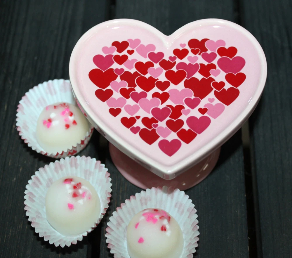 **** SHIPPING IS OFTEN CALCULATED HIGH WHEN PURCHASING MORE THAN 1 ITEM SO FEEL FREE TO MESSAGE ME FOR A SHIPPING QUOTE **** When combining purchases please click on "request total from seller" at checkout and wait for me to send you a invoice with combined shipping. If you are using your phone this option may not be available and if so just message me and I can make you a listing with everything combined and the correct amount on shipping. Thank You ;) *** These are NOT EDIBLE. *** These are my handmade highly scented wax warmer tarts or melts that are made with a special blend of wax that allows me to add up to 10% more fragrance than most waxes. These are my actual life sized large wax chocolate truffles candy topped with hearts that smell and look so real you'll be amazed they're not! You will receive 12 white chocolate truffle candy wax melts. They are scented to the max in WHITE CHOCOLATE CHERRY & NUTS. The aroma of sweet maraschino cherries smothered in milk chocolate with a sweet undertone of vanilla and nuts. This set will include a sweet little stoneware Valentine's heart cake stand to display them on until you are ready to melt them. I will also include the little heart candy paper wrappers as shown to set some in on the stand. The stand measures 4" x 3.6" x 2.17". This looks so cute displayed with your Valentines decorations or tiered tray decor and they smell wonderful just sitting out for display without melting them. They also make great gifts so please be sure to check my other listings for terrific smelling candles and tarts to go with your order. Tarts will arrive in a cello bag tied with a homespun bow and labeled so it will be gift ready. International Buyers : Please contact me for shipping quote. Shipping I strive to ship within 48 hours of payment received not including weekends and holidays. I ship USPS Priority or Parcel Post and for the heavier orders I can ship Fed-Ex. I do offer USPS Flat Rate shipping as well. Insurance is the buyers responsibility. I am always happy to combine auctions to save you money on shipping fees and I only change actual shipping costs. Please email with any shipping questions or quotes if needed. Thanks for stopping by! Please do come back again soon~*** Please note I do not accept returns for used merchandise. Must be returned in same condition as received. *** RETURNS ARE ONLY ACCEPTED IF ITEM HAS BEEN MISREPRESENTED