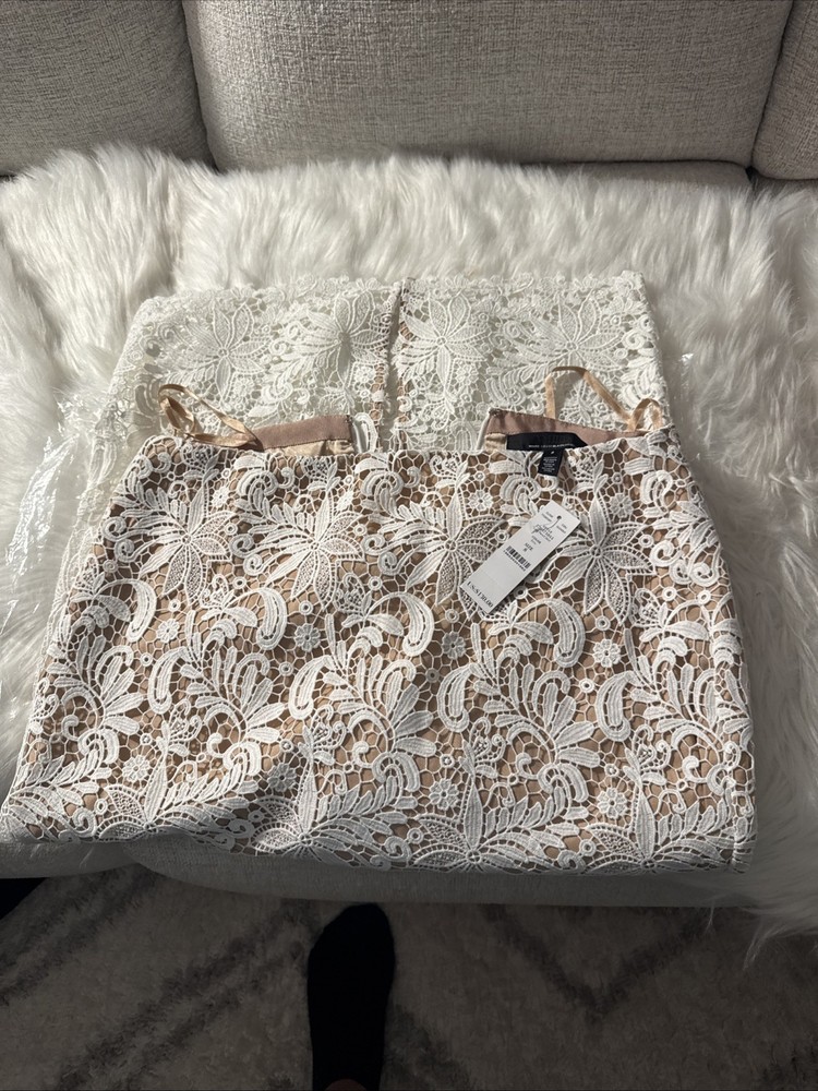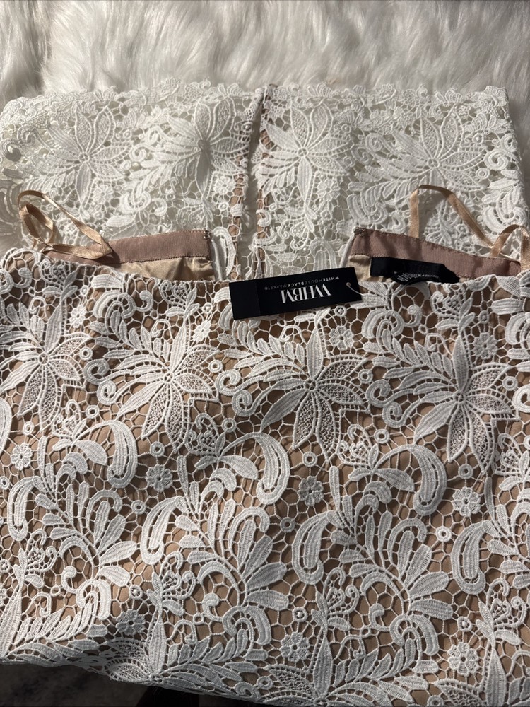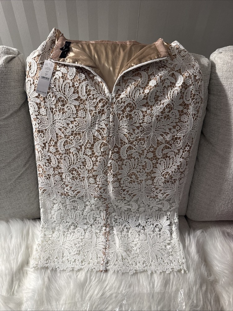 WHITE HOUSE BLACK MARKET Women's Straight Pencil Embroider Tiered White Skirt 8