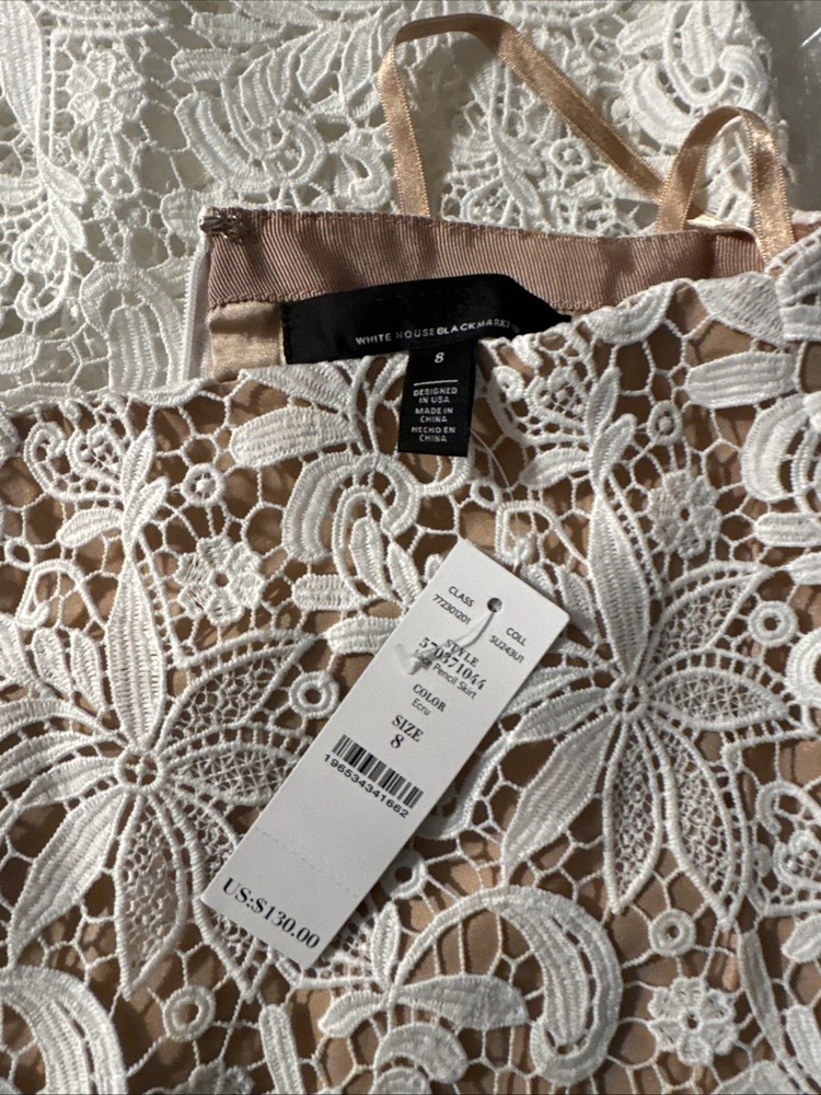 Brand:White House Black MarketColor:WhiteSkirt Length:MidiAccents:EmbroideredSize:8Pattern:EmbroideredDepartment:WomenCountry of Origin:ChinaHandmade:NoSeason:Spring, Fall, SummerType:SkirtClosure:ZipFeatures:LinedSize Type:RegularOccasion:Casual, Party/Cocktail, TravelStyle:Straight & PencilRise:MidFabric Type:LacePersonalize:NoVintage:No