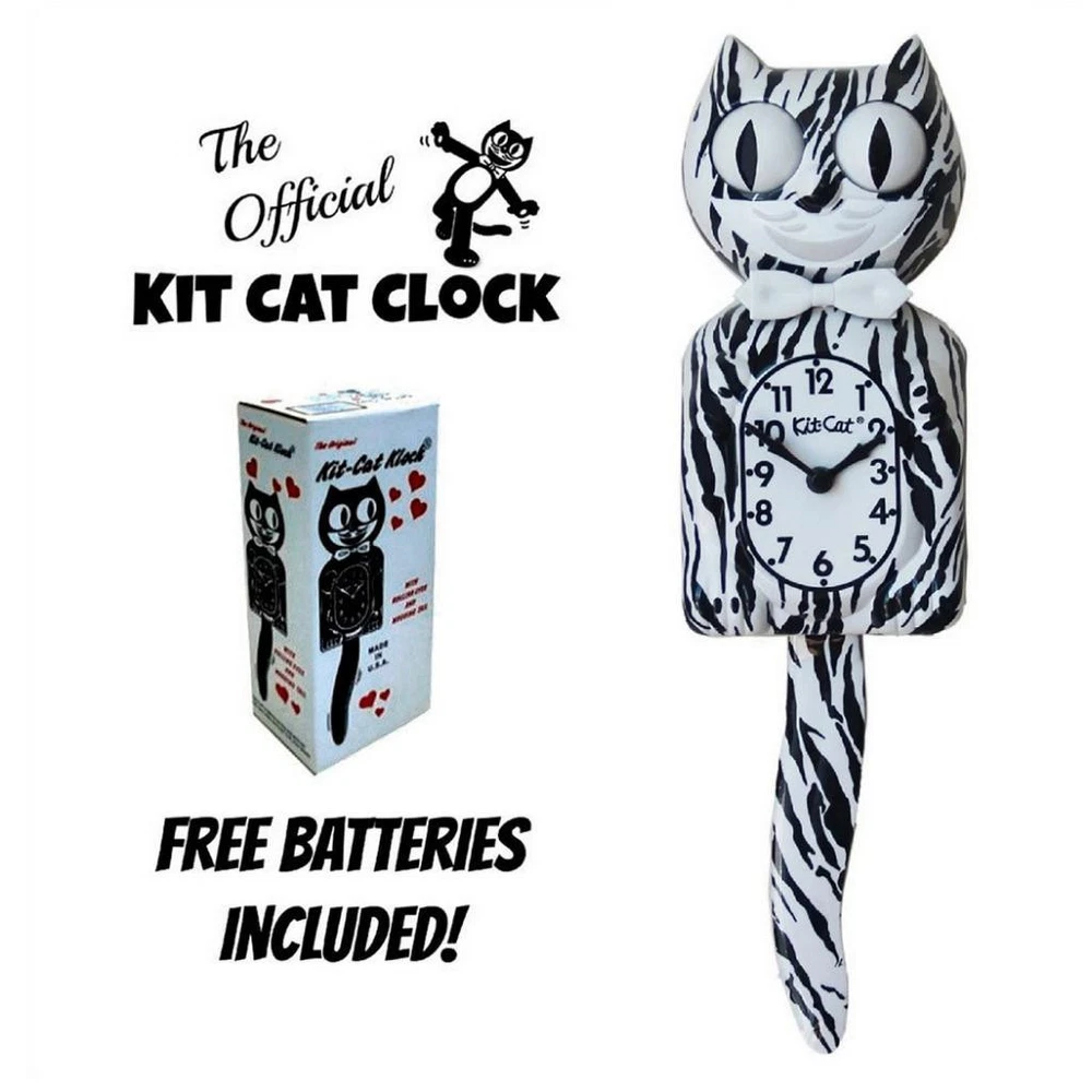 OFFICIAL KIT-CAT CLOCK OFFICIAL KIT-CAT CLOCK Click image to enlarge Description This is an official, brand new full sized Kit-Cat Clock - the iconic time piece with moving eyes and wagging tail that's brought a smile to generations of customers. This is the Limited Edition White Tiger Kit-Cat Clock, part of the Exotic Pet Kit-Cat Collection. Exotic Pet Kit-Cat clocks are individually dipped in premium hydrographic patterns, resulting in slightly different markings with every clock, making each clock one of a kind! Assembled, it's 15.5" tall (from tip of ears to tip of tail). It runs on 2 'C' batteries, and we include your first two batteries free with purchase. This wall clock comes complete with assembly instructions and a 1 year guarantee & warranty from the manufacturer. Made in the USA since 1932! Details Condition: Brand New Model: Limited Edition - White Tiger Gentleman Material: Plastic Color: White and Black Size: 15.5" x 4" x 2.5" Weight: 10 oz WE CARRY OFFICIAL 'KIT-CAT' & 'KITTY-CAT' CLOCKS IN MANY COLORS AND SIZES. SEE OUR FULL SELECTION IN THE HOME DECOR SECTION OF OUR STORE. . Shipping Shipping charges calculated to location. International Buyers International shipping charges are calculated to location in the 'Shipping and Payments' tab near the top of this page. Import duties, taxes, and charges are not included in the item price or shipping cost. These charges are the buyer's responsibility. Please check with your country's customs office to determine what these additional costs will be prior to bidding or buying. 'International First Class Mail' can take up to 6 business weeks for delivery depending on destination country, destination customs, and local or origin peak holiday shipping season. Faster 'International Priority Mail' shipping options are also available at checkout for most items. About Us The Tiny Dragon is a U.S. owned and operated 'e-retail' company. Our mission is to provide unique and affordable items of quality, promptly delivered to your complete satisfaction. Our items are shipped directly to you from our headquarters in beautiful Portland, Oregon USA. View our entire inventory at: At 'The Tiny Dragon' you are a valued customer and it is always our pleasure to serve you.