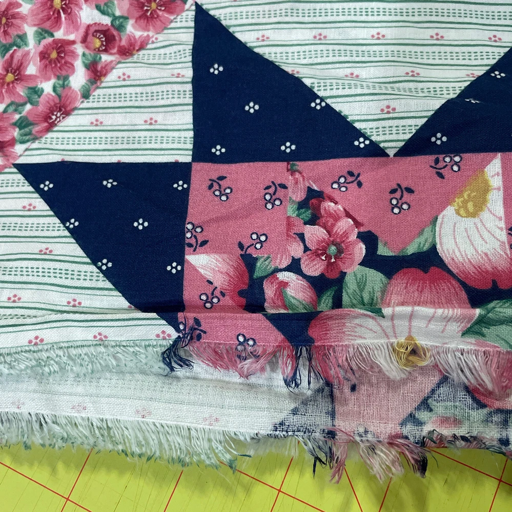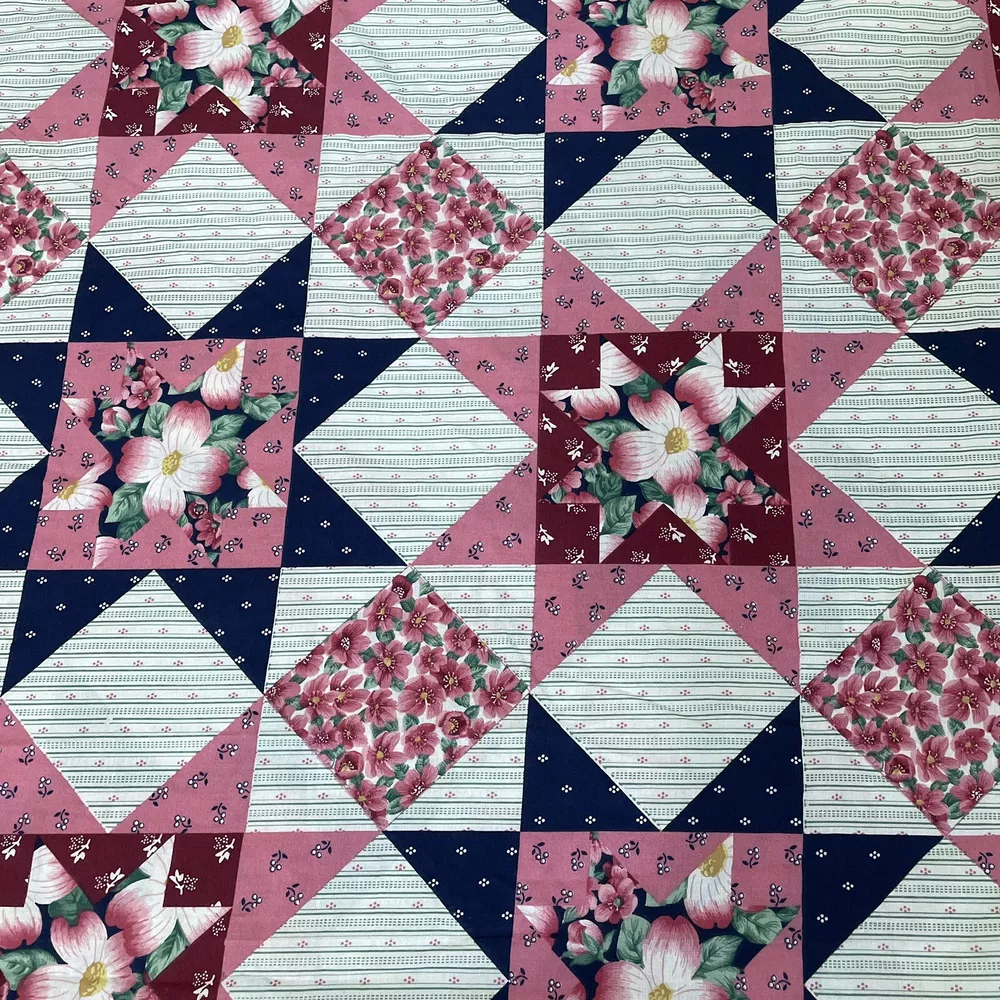 WIDE pink blue floral patchwork cheater star springs industries 1.7 yards. Has been prewashed. Fabric measures about 88” wide and 1.7 yards/61” long.