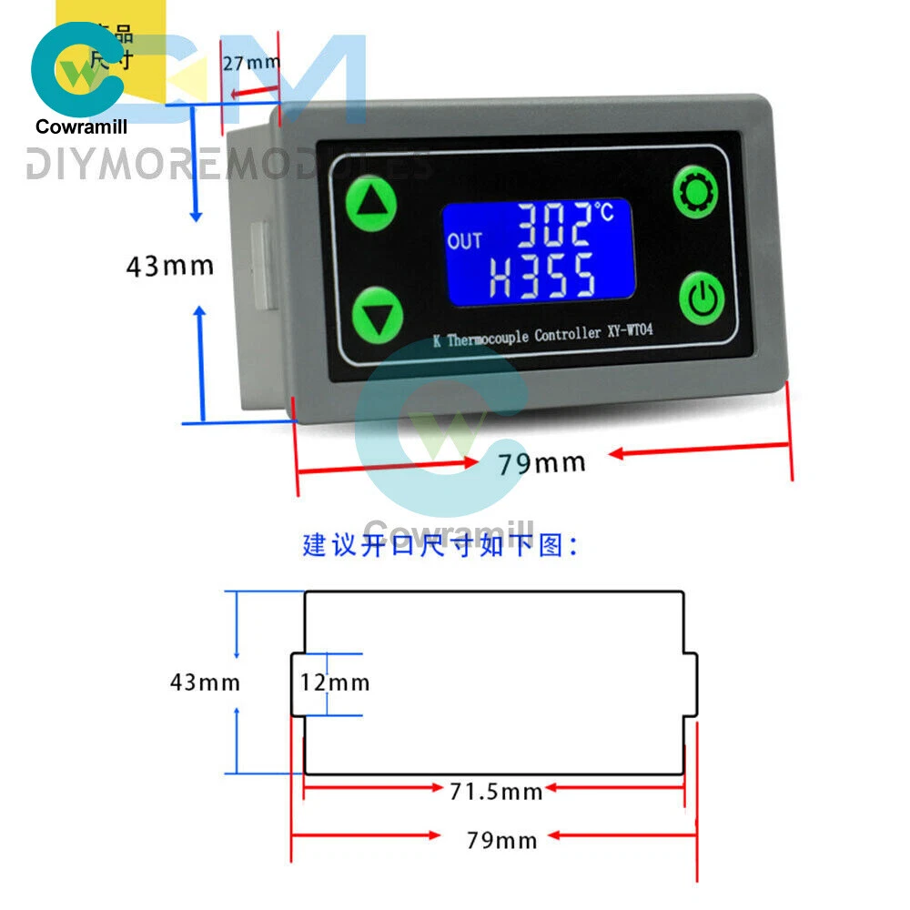 Home Arduino Module Sensor Chips About Us Item Description Features: 1: Wide range of applications 2: Remote operation 3: The system is stable 4: Simple to use 5: Small size, easy to carry Product parameters: Product name: Specifications of high temperature digital thermostat Model:XY-WT04 Supply voltage: DC6~30V Temperature control range: -99~999℃ Measurement input: K-type thermocouple Resolution: 1℃ Temperature measurement accuracy: ±2℃ Output type: 1-way relay switch Maximum control: current 10A or more Inside and outside dimensions: 79*43*30mm Package list: 1* High temperature digital thermostat Payment Shipping Refund Payment We accept PayPal only. But we only Accept your Ebay Address ,Please Make sure it's 100% right. Payment must be received in 5 business days of auction closing. Please leave note for your special request (e.g. Colors or Size) in PayPal when you pay the order. Any special request cannot be accepted after 24 hours of payment, because most of orders will be processed instantly and same day dispatched. Shipping Fill your shipping info Refund All package need to wait 30 days (US only need 7-10 days) , Please take care it.Less than 30 days,we can't take a refund . If the item is defect when you receive it or you are not satisfied with it, please return it within 14 days for a replacement or money back. But the items must be back in factory condition. Please contact us and double check the return address before you return it. If is item is defective in 12 months, you can return it to us. We will send you a new replacement after receiving the defective item.