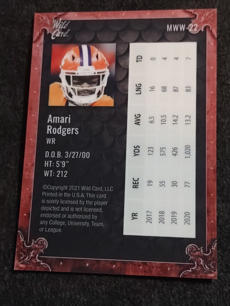 WILD CARD 2021 MATE AMARI RODGERS "GUERREROS DE FIN DE SEMANA" MWW-22 azul