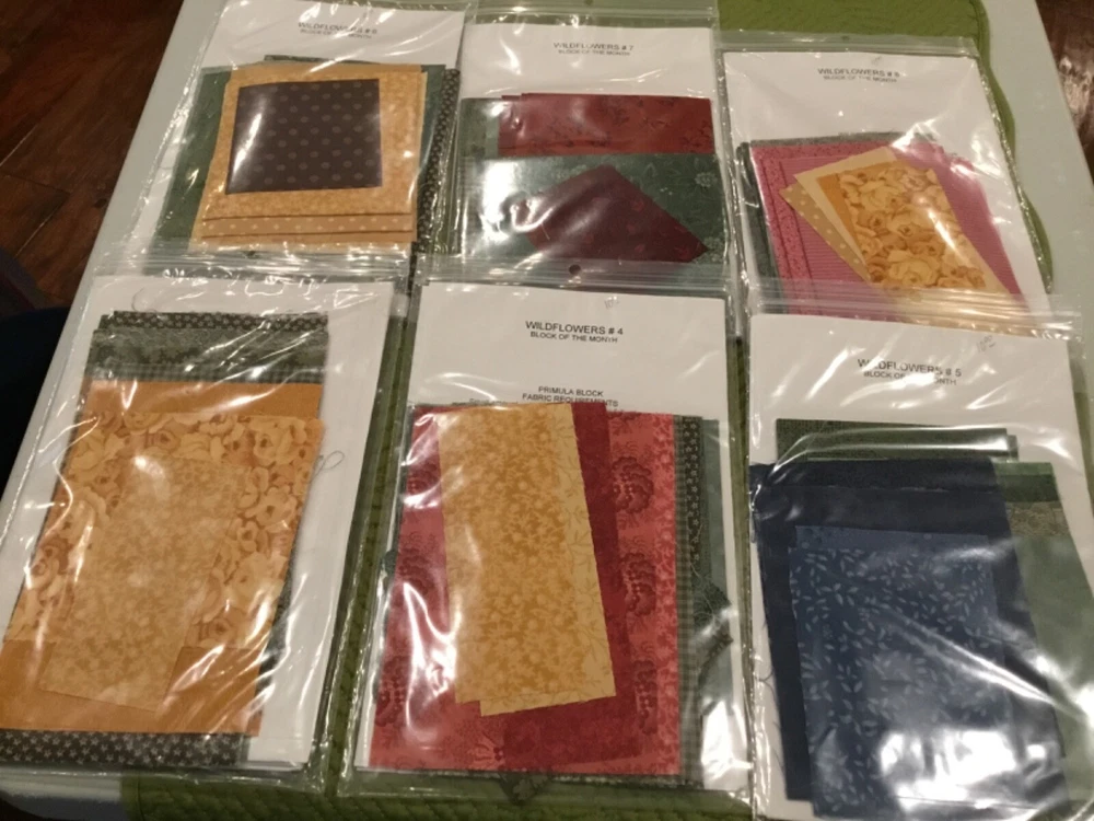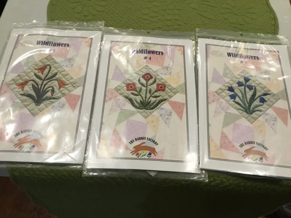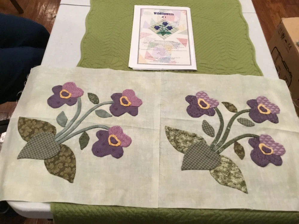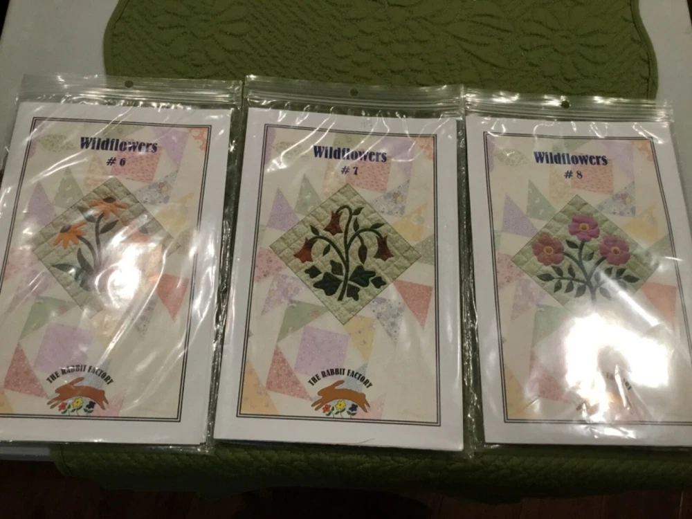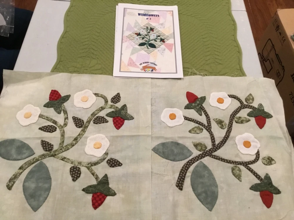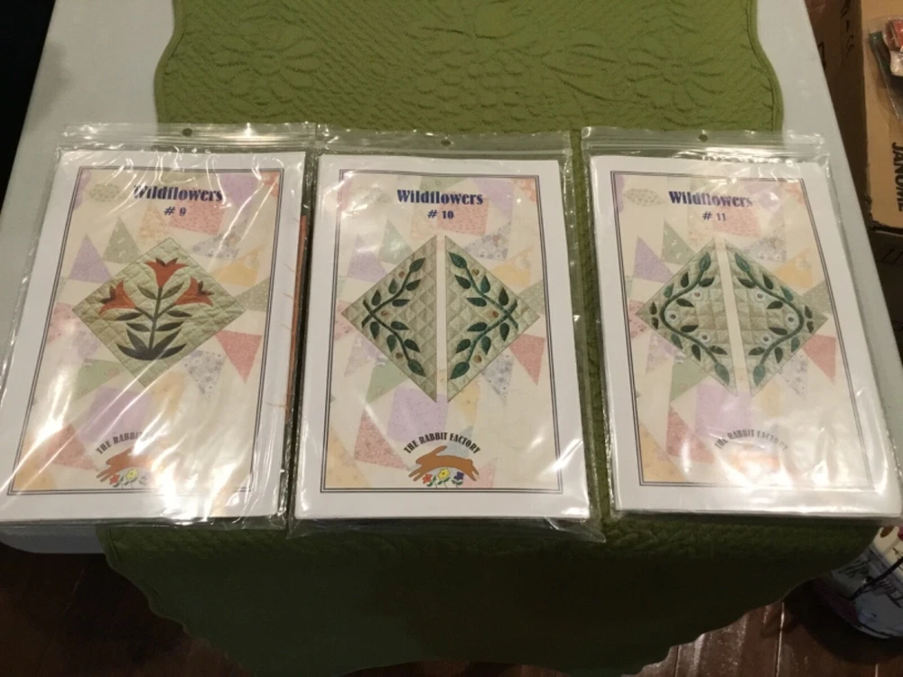 WILDFLOWERS BOM KIT BY RABBIT FACTORY - STARTED. 77” x 94 3/4” See Pictures! THIS QUILT IS AN 18 BLOCK. BLOCK 1-9 You Make 2 of the same block. BLOCK 1 & 2 are Finished. *LOTS OF EXTRA FABRIC* Quilt Top Only! I will be listing many item over the next few weeks. Lots of Quilting -Cross Stitch - Fisher Price - Jewelry as well as collectibles. I do combine shipping! Thanks for looking.