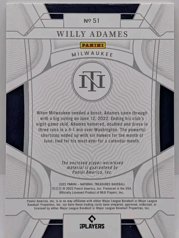 WILLY ADAMES 2022 Panini National Treasures Tag PATCH #2/8. Condition is Ungraded. Shipped with USPS Ground Advantage.