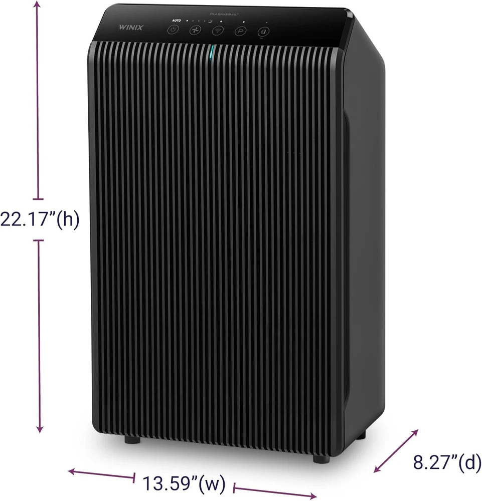 Color Polished Charcoal Gray Brand Winix Product Dimensions 11"D x 15.9"W x 25.2"H Power Source Electric Item Weight 13.3 Pounds About this item ๐๐๐๐ ๐๐๐ซ๐ข๐๐ข๐๐ ๐๐ญ ๐92 ๐ฌ๐ช ๐๐ญ.: Also cleans rooms up to 1,882 sq ft in 1 hour (941 sq ft in 30 minutes, 627 sq ft in 20 minutes, 470 sq ft in 15 minutes) ๐๐ข๐ง๐ข๐ฑ ๐๐ซ๐ฎ๐ ๐๐๐๐: Captures 99.99%* of airborne allergens including pollen, dust, smoke, and pet dander, as small as 0.01 microns ๐๐๐ฏ๐๐ง๐๐๐ ๐๐๐จ๐ซ ๐๐จ๐ง๐ญ๐ซ๐จ๐ฅ ๐๐๐ซ๐๐จ๐ง ๐ ๐ข๐ฅ๐ญ๐๐ซ: Reduces VOCs and household odors from cooking, pets, and smoke. It is designed to catch airborne particles found indoors, which also helps prolong the True HEPA Filter life ๐๐๐ฌ๐ก๐๐๐ฅ๐ ๐ ๐ข๐ง๐ ๐๐๐ฌ๐ก ๐๐ซ๐-๐ ๐ข๐ฅ๐ญ๐๐ซ: The first line of defense against the largest airborne particles found indoors ๐๐ข๐ซ ๐๐ฎ๐๐ฅ๐ข๐ญ๐ฒ ๐๐ง๐๐ข๐๐๐ญ๐จ๐ซ: Visual indicator displays real-time air quality in the room with LED lights ๐๐ฆ๐๐ซ๐ญ ๐๐๐ง๐ฌ๐จ๐ซ๐ฌ + ๐๐ฎ๐ญ๐จ ๐๐จ๐๐: Built-in air quality sensor measures and adjusts fan speed in real-time ๐๐ข๐ง๐ข๐ฑ ๐๐ฆ๐๐ซ๐ญ ๐๐ฉ๐ฉ ๐๐จ๐ฆ๐ฉ๐๐ญ๐ข๐๐ข๐ฅ๐ข๐ญ๐ฒ: Control and monitor your air purifier remotely with the Winix Smart App ๐๐ฅ๐ญ๐ซ๐-๐๐ฎ๐ข๐๐ญ: Nearly silent on slowest speed (23.5dB) ๐๐ข๐ ๐ก๐ญ ๐๐ฎ๐ญ๐จ๐ฆ๐๐ญ๐๐ ๐๐ฅ๐๐๐ฉ ๐๐จ๐๐: Unit automatically activates its quiet, energy-efficient Sleep Mode when room is darkened and returns to Auto Mode in the presence of light
