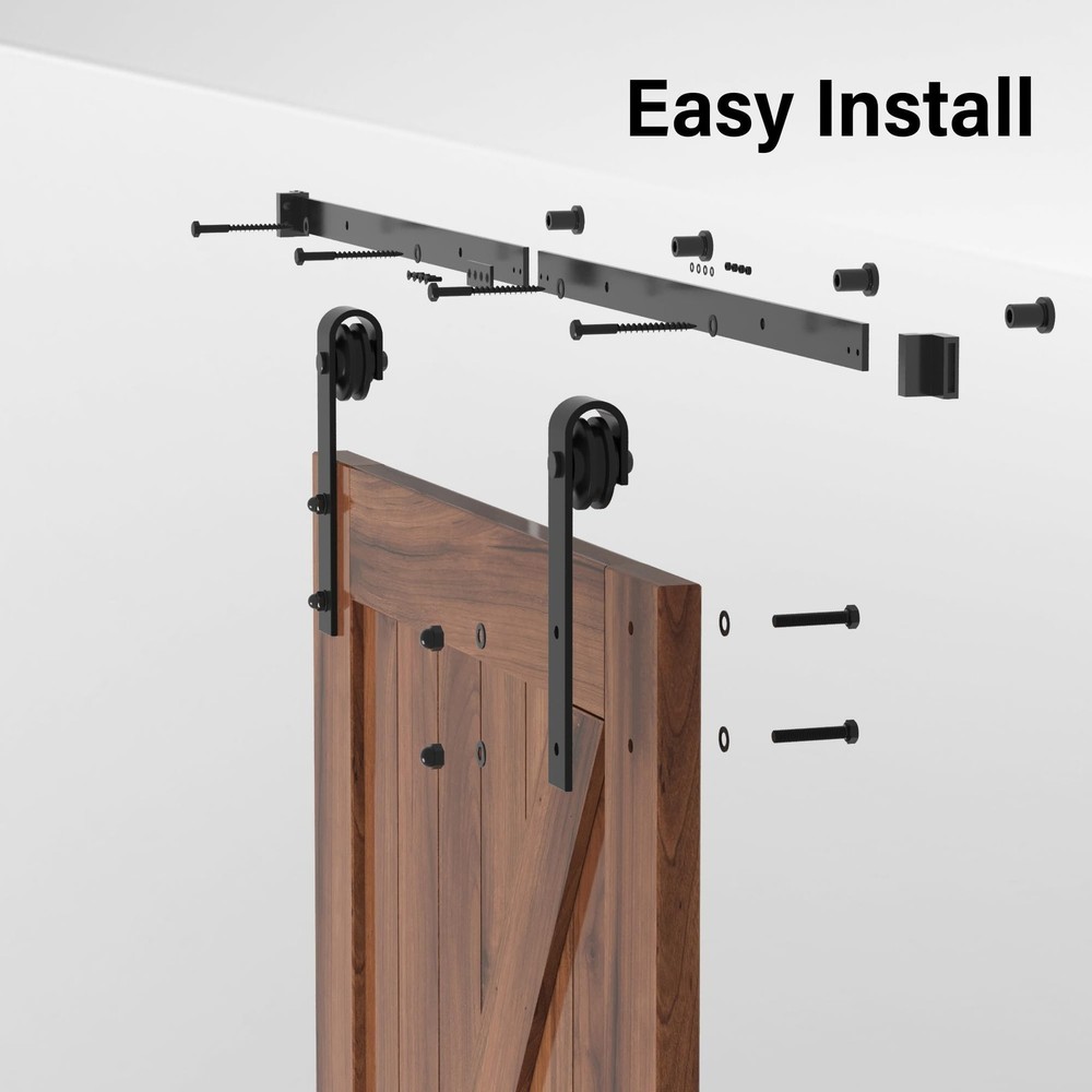 WINSOON 4FT Barn Door Hardware Kit: Single Sliding Door Hardware - Black Barn Door Track Kit - Carbon Steel Heavy Duty Door Rail - J-Shape Easy to Install for 29" Closet Panel(No Door) Product Details Size: 4FT Track Kit Color: Single Door Kit Brand: WINSOON MPN: GCM3970-N UPC: 810155761127 EAN: 0810155761127 Manufacturer: WINSOON Part Number: GCM3970-N Item Weight: 7.28 pounds Product Dimensions: 49.2 x 4.33 x 3.42 inches Country of Origin: China Item model number: GCM3970-N Is Discontinued By Manufacturer: No Size: 4FT Track Kit Color: Single Door Kit Finish: Black Installation Method: Wall-Mounted Item Package Quantity: 1 Usage: Install Barn Doors Included Components: tracks, fixed roller, adjustable roller, fixed roller lock bracket, spacer, hinge, Bottom pivot plate, Sealing Strip, Installation Manual. Batteries Included?: No Batteries Required?: No Date First Available: August 17, 2018 Sturdy and durty barn door hardware: The side-mounted sliding barn door kit is made of high-quality carbon steel, that can ensure durability and studity to support barn door weight up to 277 lbs. The surface of barn door track is adhered to a fine black powder coating by high temperature to ensure that it can be used for a long time. How to choose the single barn door hardware kit: The sliding door track length should be at least double the door width. And there should be a minimum of 5.1" gap between the barn door and the ceiling.Fit door panel width: 29", door panel thickness: 1 3/8" - 1 3/4". It can be paired with wood barn door, closet door, MDF barn doors, and more.(If you have thicker door, contact us and longer pipe clamp screws can be supplied) Quiet and smooth sliding door hardware: The high-quality carbon steel track kit ensures barn door slide smoothly. J-Shape barn door rollers can provide smoother rolling. With carbon steel anti-hopping block and stopper for stable movement and long useing. Easy to install: The barn door hardware kit package include: 1x4FT sliding track,2xdoor stoppers,2xwall hangers with rollers,1xfloor guide,2xanti-jump disks,3 M10 bolts and spacers,4 M10 60 bolts; All necessary hardware is included. And we can provide installation video to make you easier when install the barn door kit.This sliding door hardware takes up to 2 people to install in 40 minutes. If you have any issues, please let us know, and we will do our best to assist you.(DOOR NOT INCLUDED) Versatile sliding barn door hardware: The black barn door track provides a sleek, modern look that can complement various interior design styles, from rustic to industrial, including residential homes, offices, and commercial spaces. Barn door hardware kit allow doors to slide parallel to the wall, saving valuable floor space compared to traditional swinging doors. This makes them ideal for smaller rooms or areas with limited space.