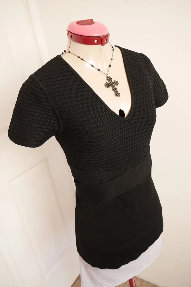 This gorgeous JUMPER has short, cap sleeves and a v-neckline. It is black, in a tight knit, with a textured ‘stripe’ pattern at the bust/sleeves, a crossover design at the waist, and a smooth knit for the rest. The style is ‘Black Mix Stitch Tie Knit’. It is from WITCHERY and is a size ‘XS’, which I have estimated to be a size 8, so please check the measurements below, to ensure a good fit. The approximate measurements are: Bust: 42cm Length: 62cm It is a viscose / nylon mix and needs a cold, hand wash. It is Brand New, With Tags (rrp $139.95). Lots of other information about this fabulous jumper can also be found in Item Specifics. A010 Please take a look at the tons of other gorgeous items I have available in your size! I love to combine postage and save you money! So if you are purchasing more than one item from me, please wait for me to send you a combined invoice, or press the 'Request a Total' button in your Cart before paying. I rate my items in the following way: BNWT / BNWOT: Brand New, With Tags or Brand New, Without Tags (some part of the tag will still be attached). New items that have never been worn. EXCELLENT: has been worn, but shows very few actual signs of wear. GOOD: has been worn and is showing light signs of wear. FAIR: has been worn and is showing more signs of wash/wear - or has a small fault, which will be clearly described in the listing I am only human and can make mistakes in my listings and descriptions - so if for any reason you are unhappy with your purchase, please contact me using the 'Contact Seller' button first, so we can quickly resolve the issue. This item comes from a SMOKE FREE HOME but the odd puppy hair may drift in due to the fact she is my darling shadow throughout the day.