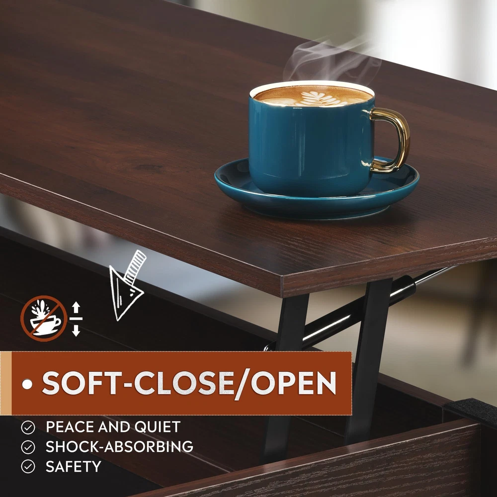 【LIFT-TOP Design】 Our coffee table features a sturdy lift-top design that effortlessly raises and lowers with stability and safety in mind. Crafted with a robust metal framework, it ensures durability while providing a secure platform for your belongings. 【Spacious Storage】With a hidden compartment and two open shelves, this coffee table offers plenty of room to stash away essentials. Whether it's laptops, books, or gaming gear, you'll find the storage both generous and reliable. 【Product Dimension】Measuring at 19.69"D x 41.34"W x 20.2"H, this table is just the right fit for your living space. Plus, it can handle up to 11 lbs on the lift top and a whopping 44 lbs in the hidden compartment, making it both practical and versatile. 【Sturdy and convenient】Crafted from high-quality MDF board and a robust metal frame, this coffee table is built to last. It features four caster wheels and four adjustable feet at the bottom, allowing for easy movement and protecting your floors from scratches. 【Easy to Install】With the included detailed assembly instructions, tools, and clearly marked parts, you can complete the installation in just 30 minutes. If you have any questions, our customer support is always here to help.