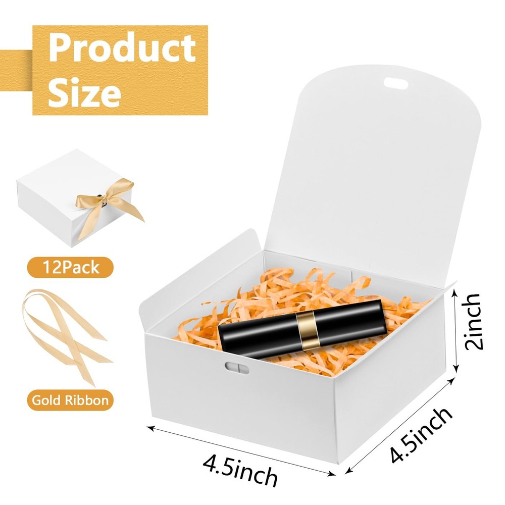 WLUSEAXI 12-Pack Small White Gift Boxes with Lids 4.5x4.5x2 Inches for Jewelry Favors Presents