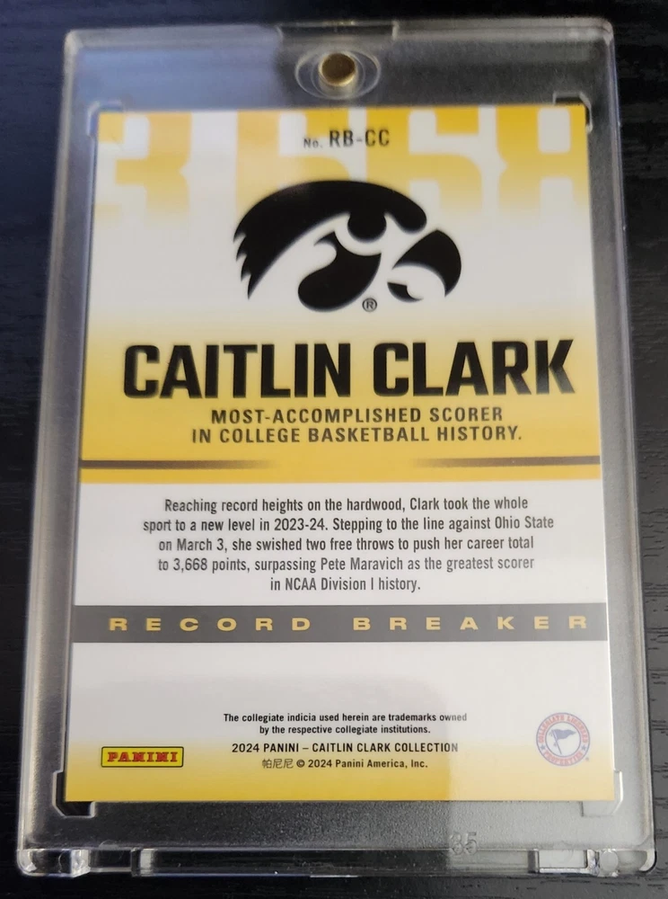 This amazing sports trading card features the talented basketball player, Caitlin Clark, from the Iowa Hawkeyes team. The card is part of the 2024 Panini Caitlin Clark Collection and is a must-have for any sports trading card enthusiast. With its sleek design and high-quality printing, this card is sure to be a standout in any collection. The card is manufactured by Panini and is classified under the categories of Trading Card Singles, Sports Trading Cards, and Sports Mem, Cards & Fan Shop. Its aspects include the player/athlete name, team name, and card type. This is a great opportunity to add a valuable piece to your collection and show off your love for the sport.