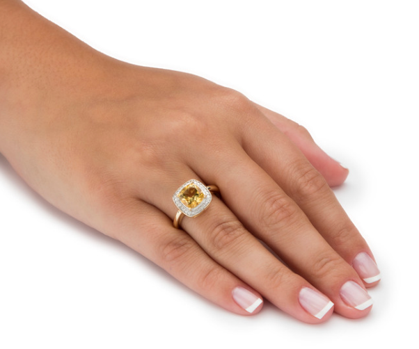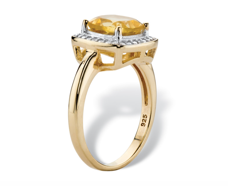 FREE WORLDWIDE SHIPPING Metal Stamp .925 Sterling Silver Metal 14k Gold-Plated Sterling Silver Metal Weight 4 grams Material Metal Finish Bright Length 1/2" Width 3/4" Shank Width 1/16" Style Cocktail Gem Type(s) Citrine,Diamond Total Number of Stones 5 PB
