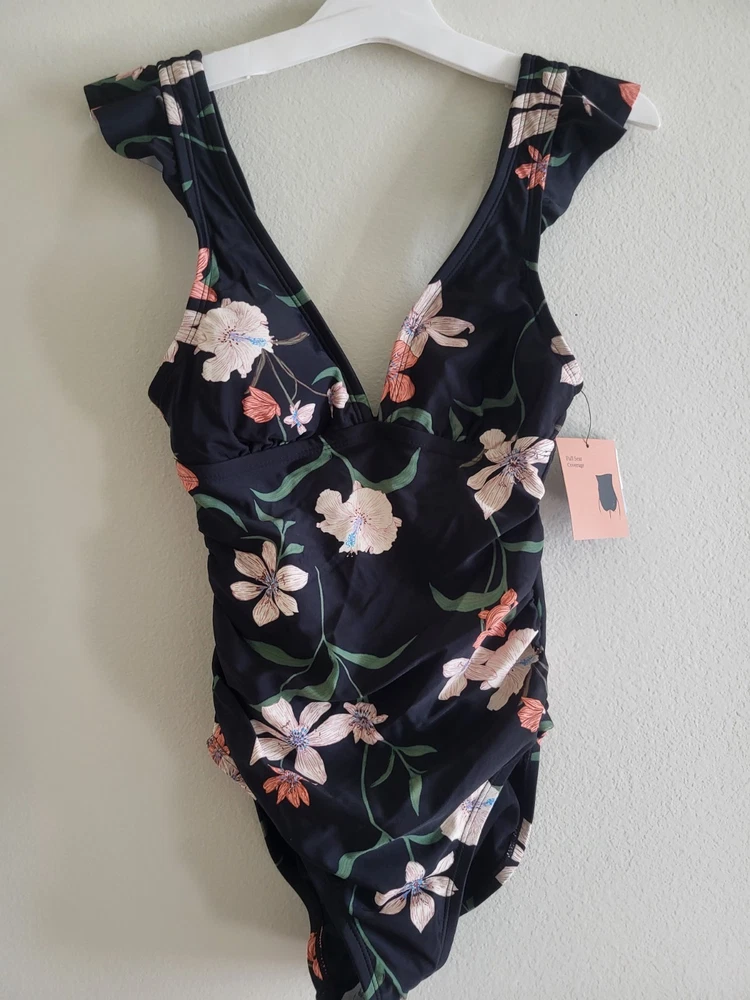 $ 130.72J. Crew Ruched Ruffle One Piece Swimsuit Size 20 Pink Deep V Neck NWT
