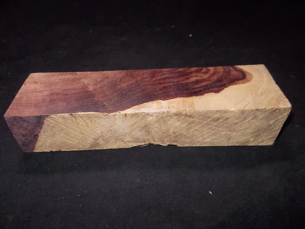 .This Honduran rosewood burl block is perfect for making gun grips, knife scales, and box tops. The rich, deep color and intricate grain pattern make it a stunning choice for any woodworking or crafting project. Harvested from Honduras, this rosewood is known for its durability and strength, making it a reliable choice for high-use items. The cutlery blanks aspect allows for endless creative possibilities, and the model aspect specifically refers to the type of wood used. In addition to gun grips and knife scales, this block can also be used for turning blanks, adding to its versatility. Perfect for both novice and experienced woodworkers, this Honduran rosewood burl block is a must-have for any crafting, collecting or woodworking project. SIZE= 7/8" x 1 3/8" x 4 7/8" APPROXIMATELY