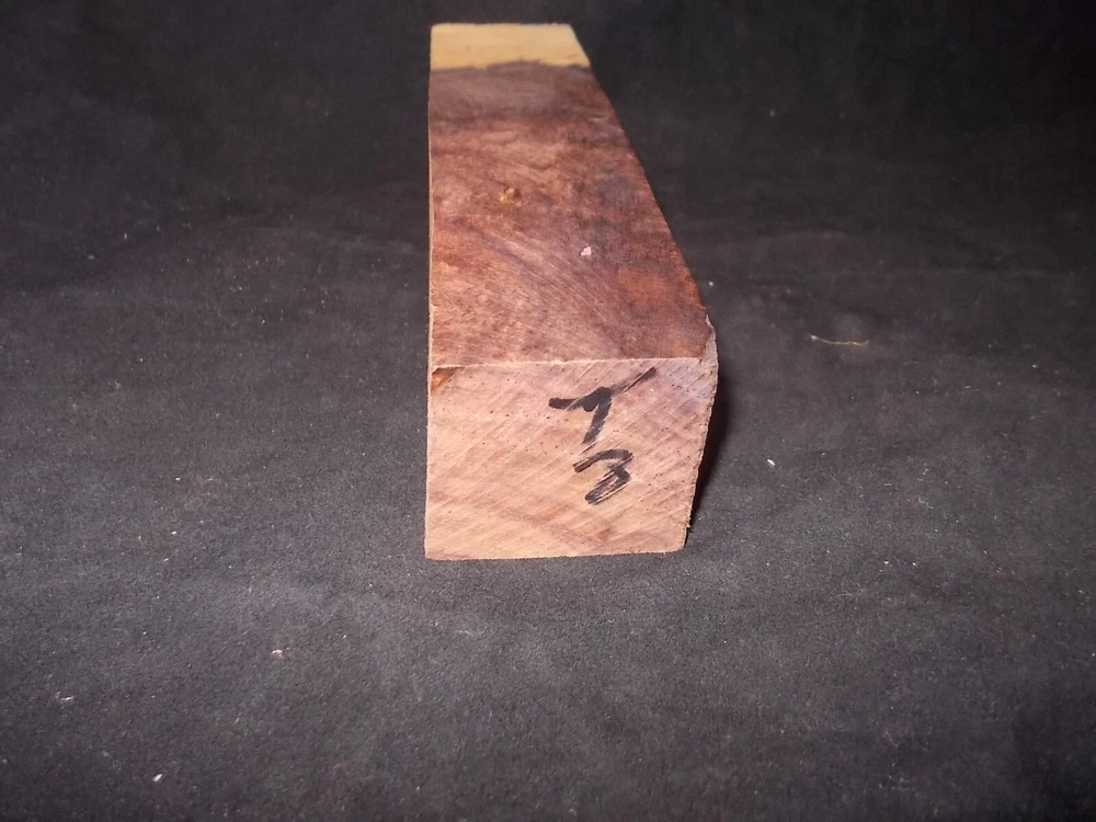 .This Honduran rosewood burl block is perfect for making gun grips, knife scales, and box tops. The rich, deep color and intricate grain pattern make it a stunning choice for any woodworking or crafting project. Harvested from Honduras, this rosewood is known for its durability and strength, making it a reliable choice for high-use items. The cutlery blanks aspect allows for endless creative possibilities, and the model aspect specifically refers to the type of wood used. In addition to gun grips and knife scales, this block can also be used for turning blanks, adding to its versatility. Perfect for both novice and experienced woodworkers, this Honduran rosewood burl block is a must-have for any crafting, collecting or woodworking project. SIZE= 1 1/4" x 1 3/8" x 5 7/8" APPROXIMATELY