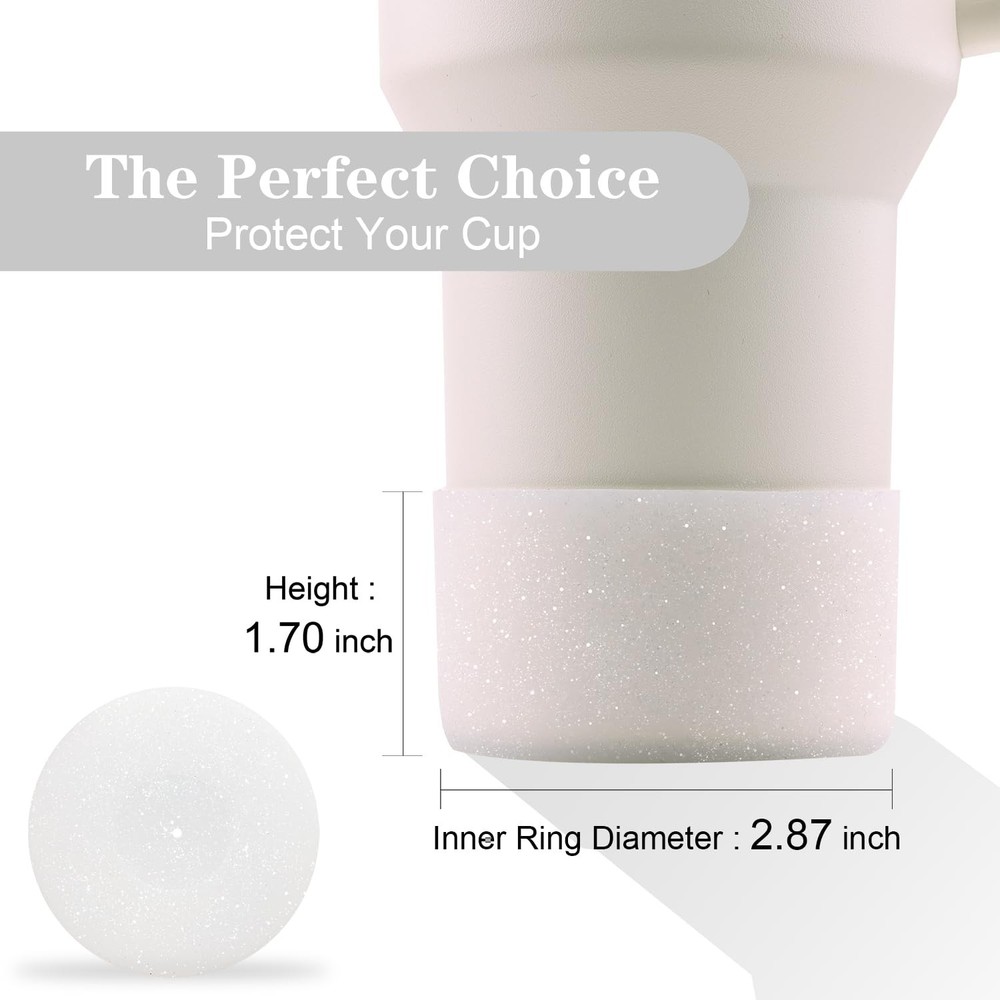 WORBSS Glitter Silicone Boot Sleeve for Stanley Cup H2.0 40oz Accessories & Hydro Flask 18-24oz with 2.85-3.0 inch Anti Slip Bottom Cover Bumper for Water Sport Bottles Personalized Identification Product Details Color: Double Transparent Silver Brand: TLCFSHANGJIA MPN: Boot-Double Silver UPC: Does not apply EAN: Does not apply Brand: TLCFSHANGJIA Material: Silicone Bottle Type: Standard Bottle Color: Double Transparent Silver Capacity: 1.5 Pounds Brand: TLCFSHANGJIA Material: Silicone Bottle Type: Standard Bottle Color: Double Transparent Silver Capacity: 1.5 Pounds Special Feature: Non-Slip Product Care Instructions: Hand Wash Only Model Name: Boot-03 Recommended Uses For Product: General liquid consumption during sports and outdoor activities Number of Items: 2 Reusability: Reusable Shape: Cylindrical Style: Decorative Unit Count: 2.0 Count Specific Uses For Product: General liquid consumption during sports and outdoor activities Item Weight: 0.09 Kilograms Manufacturer: TLCFSHANGJIA Part Number: Boot-Double Silver Item Weight: 3.2 ounces Package Dimensions: 5.59 x 4.72 x 2.76 inches Item model number: Boot-Double Silver Pattern: Solid Special Features: Non-Slip Batteries Included?: No Batteries Required?: No Date First Available: September 6, 2023 Material Description - This boot is made of high quality food grade silicone material, with ornamental pvc scrap-foil, soft, flexible and durable, safe for all ages Snug Fitting - Our Silicone boot fits Most Vacuum Sealed Water Bottles, such as 20 30 40 oz Stanley Quencher H2.0 (Boot Size: 2.87inch inside diameter, 1.70 inch high) it designed to provide the perfect fit for a wide variety of bottles for Stanley Adventure Quencher Tumbler/Yeti Rambler/Owala/Hydro Flask/Simple Modern/Iron Flask/MaxBase Tumbler/(Not all oz sizes are applicable), which perfectly fits the cup bottom and won't fall off easily Safe - Your Stanley cup or other types of water bottles are precious and should be protected at all costs. Our durable twinkled bottom boot helps protect against dents, dings, drops and damage done from accidental thumps. It eliminates loud noises when placing bottles on hard surfaces and makes sure they stay safe when you're on the go Fashion Desing - Our glitter silicone bottle boot are available in a wide variety of colors and designs allowing them to double as functional decorative pieces to add a stylish touch to your look. Theyre ideal for sports and all your outdoor activities Perfectly Gifts - You will get 2 pack of glitter boots for yourself, family, friends, or for spare. Suitable both for the elderly, adults and children, perfect water bottle accessories for stanley tumblers, and the first choice for holiday gifts! (The bottle is not included) Note - Due to the use of different environments and light, the actual color may have a certain error with the picture. The boot 's surface may have sporadic sequins fall off, is a normal phenomenon. Warning: Do not use the boot to hold food or water, or you will ingest debris