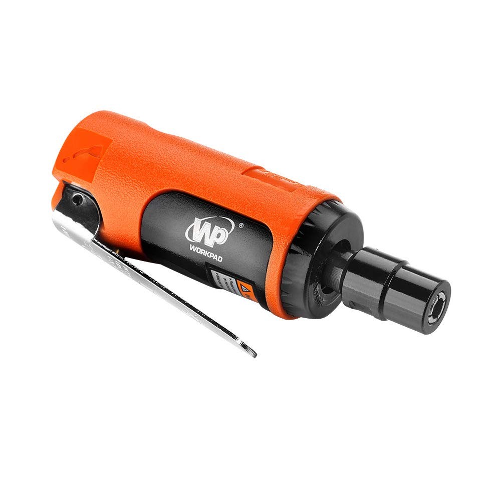 This Straight air die grinder is suitable for grinding, polishing, hole repair, light weld grinding and sharpening. It can be installed with various grinding heads to achieve various functions. It is multi-purpose and powerful! The Straight air die grinder has excellent durability with 25,000 rpm power. The ball bearing structure and aluminum body not only make the service life longer, but also reduce the weight of the body and increase the stability of use! This stable, efficient, lightweight, durable, safe and reliable tool will satisfy all your expectations for the Straight air die grinder! Free Speed(rpm):25,000 AVG.Air Consumption(cfm|I/min):3.0|85 Length(inch/mm):4.76/121 Weight(lbs/kgs):0.73/0.32 Air Exhaust:Front Collet(inch|mm):1/4",1/8"| 6mm,3mm Air Pressure:90psi/6.3kg/c㎡ Air Inlet:1/4" Noise Level(dBA):90 【Supports narrow jobs】This mold grinder has a free speed of up to 25,000, small size and high power, making it suitable for working in tight spaces 【More precise】Right-angle design for reaching tight or angled grinding jobs. Adjustable power regulators and radial runouts of less than 0.15 mm make operation more precise and work more efficient 【Long life】High quality gear and ball bearing construction for extended tool life 【Easy to use】Ergonomically designed, lightweight aluminum body with low vibration design to reduce hand fatigue 【Safer designed】Using advanced switching technology, after tens of thousands of experiments, the switch is more flexible, the operation is more convenient, and the work is safer