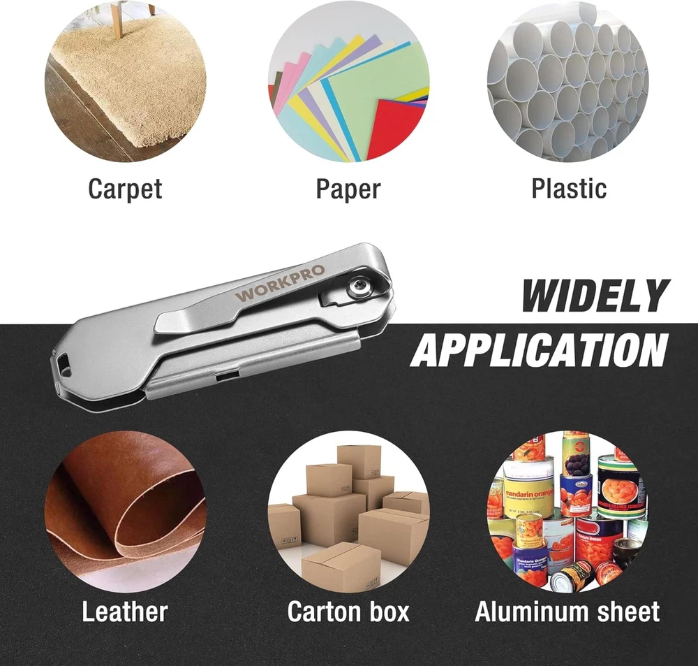 Free eBay listing template designed by dewiso.com WORKPRO 2PCS EDC Folding Utility Knife, Mini Box Cutter with Quick Open Axis Lock, Quick Change Blade Razor Knife, Foldable Small Pocket Knife with Belt Clip, 2 Packs with 10 Extra Blades FREE AND FAST SHIPPING! About this item Pack of 2, with 10 Extra Blades Stainless steel construction offers durability and anti-corrosion Lightweight design (only 1.87 oz) provides maximum comfort for everyday carrying Sturdy and springy belt clip makes it convenient to carry around Quick blade change mechanism makes it easier and faster to change the blades, and it accepts all standard utility knife blade Perfect for cutting boxes, pieces of plastic, or scraping off glue/gunk from surfaces Great Support : The world's 2nd largest hand tool company for quality security and long-term support. If you have any questions about the product, please contact us. We will reply to you as soon as possible within 24 hours. Thank you for your support › Product We offer a 30-Day Return Policy on items which you are not completely satisfied with. You have the option for a full-refund or an exchange of the item. No returns are available on items shipped outside of the US . Shipping We offer Free Shipping to the US and ship within 2 business days of payment, usually sooner. We use UPS express shipping. That's why your products are usually delivered within 3 days . Contact We try our very best to make sure every customer is completely satisfied. If there's a problem , message us! We're happy to help. 24/7 live chat available.