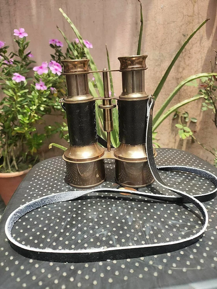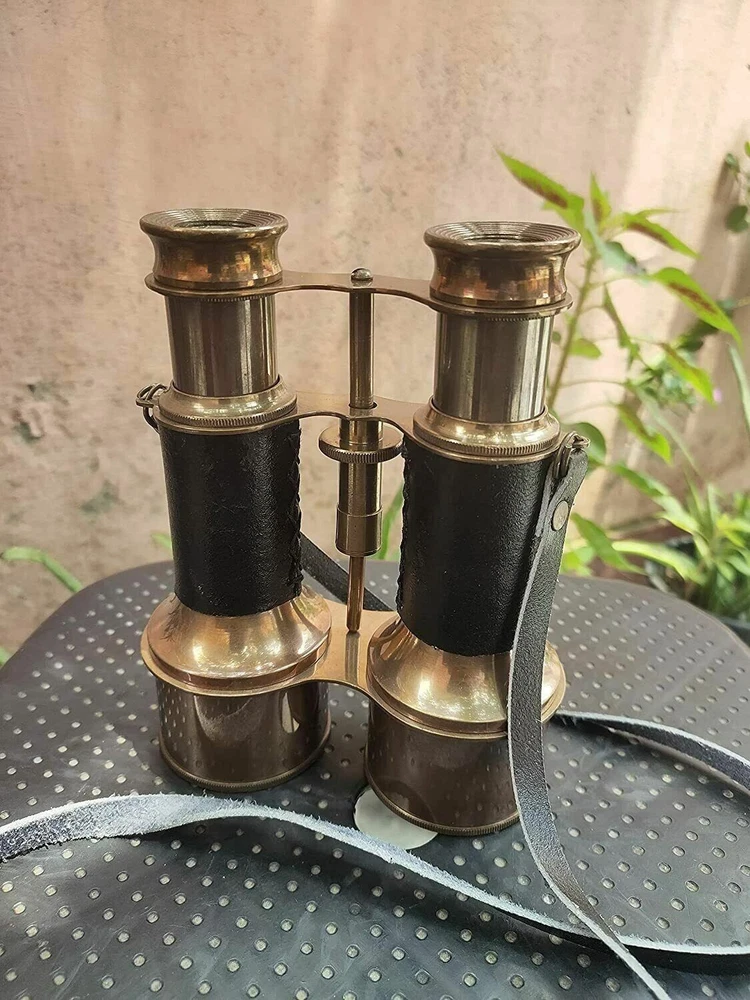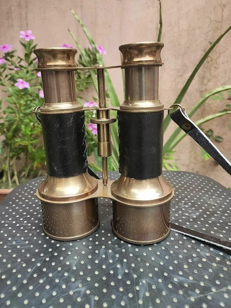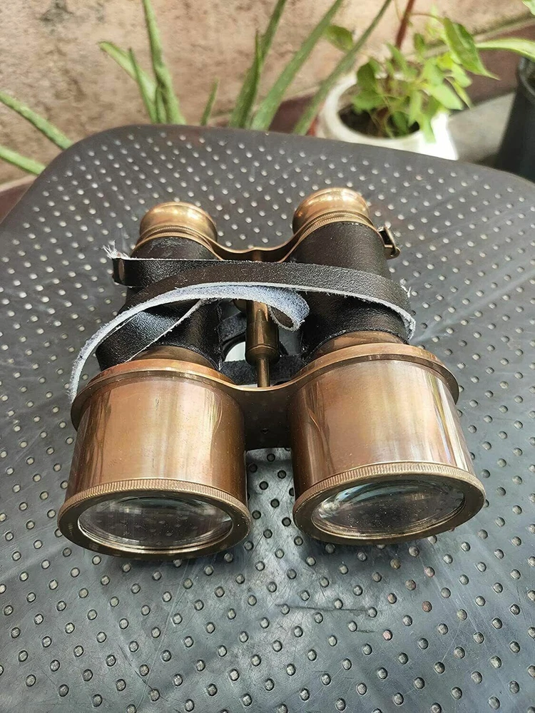 WORLD 6" Nautical Victorian Marine Brass Binocular; , Cyber Monday Gift HANDMADE ITEM WITH EXCELLENT QUALITY : Made of Antique Solid Pure Brass and BLACK Leather, Color :Black EASY FOCUSSING : A Knurled Knob in the Middle Near Eye Pieces for Manually Focussing in this 6" Small Compact Hunting Binocular. HOW FOCUSSING WORKS : Move the Knurled Knob circularly while Seeing the Object, then Stop Moving when you get clear Image. * FOCUSSING DIFFERS PERSON TO PERSON ACCORDING TO THEIR EYE SIGHT. PORTABLE & TRAVEL BINOCULARS FOR ADULTS & YOUTH : Easy to carry to any Outdoor place like when you go to watch football matches,Any historical Monuments,Visiting Mountains,hills, for Hunting,Birds Watching,etc. VINTAGE & MARINE Binocular With 15x Magnification , Neck Strap On Binoculars . EXCELLENT GIFT for NAVY & SAILORS : Wonderful Nautical Binocular to gift your loved ones. ➤ All Work is Handmade. This is a Reproduction Item, Not Sold as Antique. ➤ Made in INDIA , LOVED by the World. Made by our 20 Years Experienced Indian Craftsmen. Sold & Manufactured by "SHIRAZ HANDICRAFT " from INDIA.