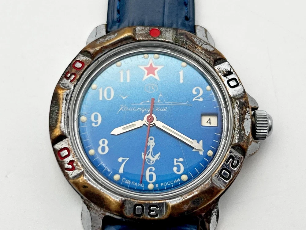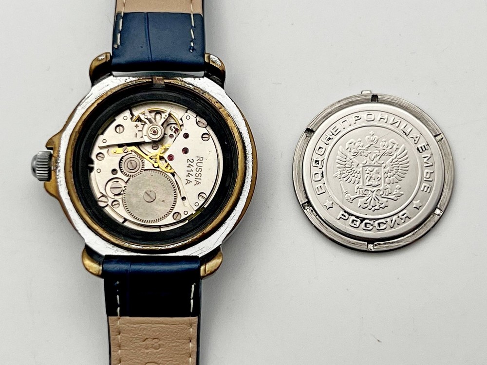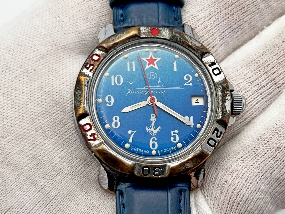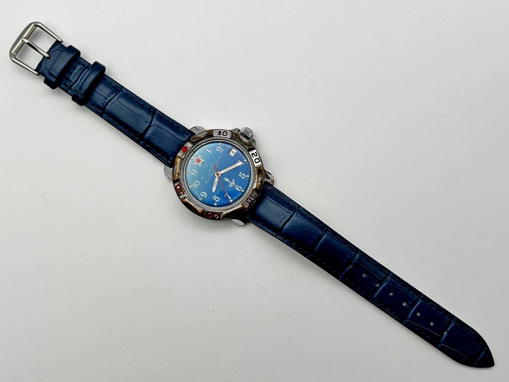 WOSTOK Komandirskie 2414A Anchor Vintage Wristwatch Vostok Serviced Watch Watch "Commander" 17 Jewels, Blue Dial, Dark Blue Leather Band, Calendar, luminescent Indexes. Vintage wristwatch Vostok Komandirskie, model 2414, originally designed and produced in the USSR for military and aviation use. This particular piece was manufactured after the collapse of the Soviet Union at the same factory, preserving the original Soviet design and quality. The watch has been professionally serviced and is in good working condition. Great for collectors of Soviet-era and post-USSR timepieces. Please watch the photos carefully as they are important part of description. Contact me if any questions. I do offer combine shipping discount if you buy 2 items or more. I make shipments the next business day after the purchase. Buyer protection is in effect. Please watch the photos carefully as they are important part of description. Thanks for your interest. Have a look at some other lots at our store. 💛💙