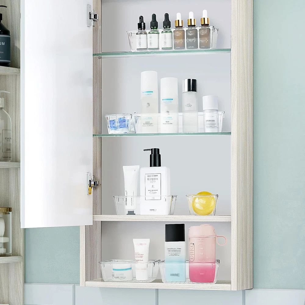 Variety Storage Ways: Suitable for all kinds of drawers, such as dresser / bathroom / kitchen / office. Ideal choice for organizing cosmetics, pins, hair accessories, jewelry, office supplies, craft supplies, utensils, etc Stackable Design: These clear storage bins stack into one other to help maximize your space. Use them side by side to keep organized. The clear color allows you to save time and find what you need quickly and easily Long Lasting and Non-Slip: The plastic is robust and long lasting. The bottom of the storage organizers has a non-slip design to prevent the tray from moving around when the drawer is used 4 Combinations of Different Sizes: A set of cabinet organizer includes 25 storage bins of 4 different sizes. Includes: 9 x 6 x 1.8 inches (3 pcs), 9 x 3x 1.8 inches(6 pcs), 6 x 3 x 1.8 inches(8 pcs), 3 x 3 x 1.8 inches(8 pcs) Premium Material:The drawer organizer is made of non-toxic plastic which may be safely used. The transparent design makes it easy to find what you need quickly Capacity 16.2 Cubic Inches, 32.4 Cubic Inches, 48.6 Cubic Inches, 97.2 Cubic Inches Unit Count 25.0 Count Item Weight 2.7 Pounds Product Dimensions 9"L x 6"W x 1.8"H Finish Type Unfinished Manufacturer Part Number WB-02-00041 Material Type Plastic Item model number WB-02-00041 Manufacturer WOWBOX Number of Items 25 Shape Rectangular Color Clear Material Plastic Brand WOWBOX 7146275