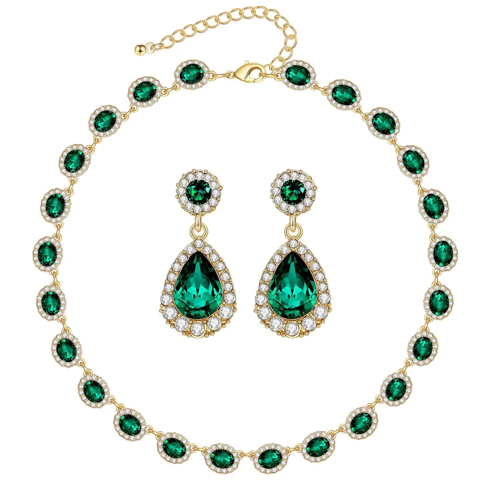 WOWORAMA Crystal Bridal Jewelry Set Statement Choker Necklace Teardrop Dangle Earrings Set Rhinestone Wedding Jewelry Set for Women Bride Bridesmaid Jewelry Party Prom Jewelry Set Product Details Color: Green Brand: WOWORAMA MPN: Does not apply UPC: Does not apply EAN: Does not apply Package Dimensions : 6 x 4.2 x 0.5 inches; 3.53 ounces Department : womens Date First Available : June 12, 2021 Brand, Seller, or Collection Name: WOWORAMA Metal: Copper Material: Copper Gem Type: Cubic Zirconia, Rhinestone Chain: Cuban Clasp: Lobster Clasp Number of stones: 3