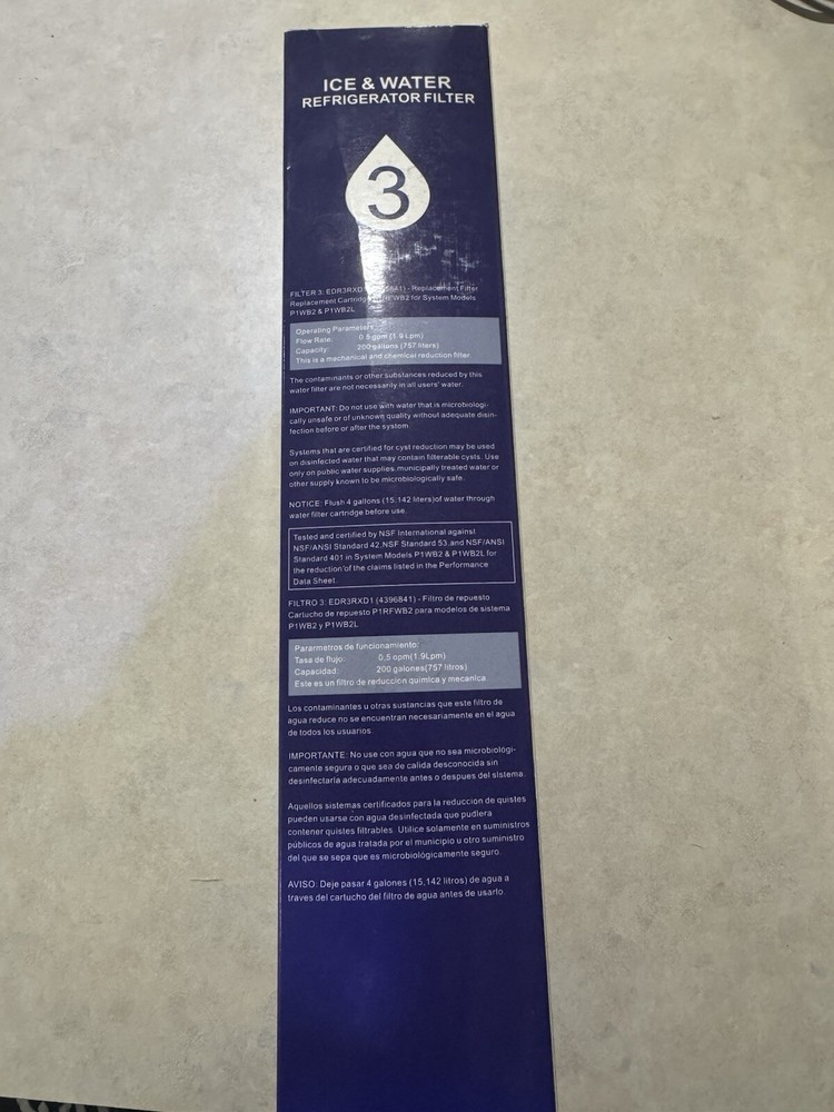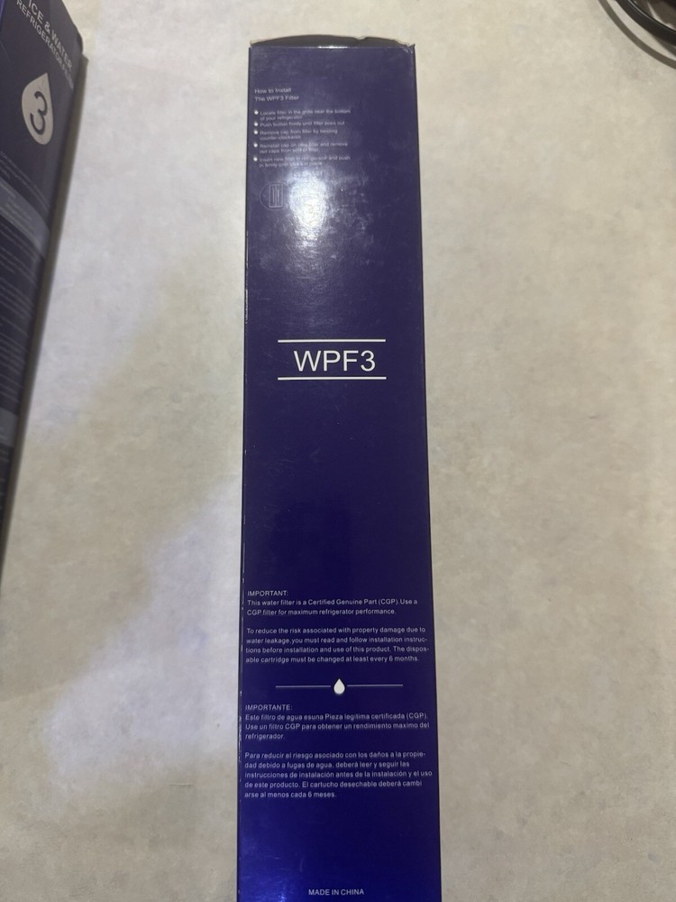 WPF3 Ice & Water Refrigerator filter. Please know that this brand is unknown. Has not been used at all as there is still a seal on all three.
