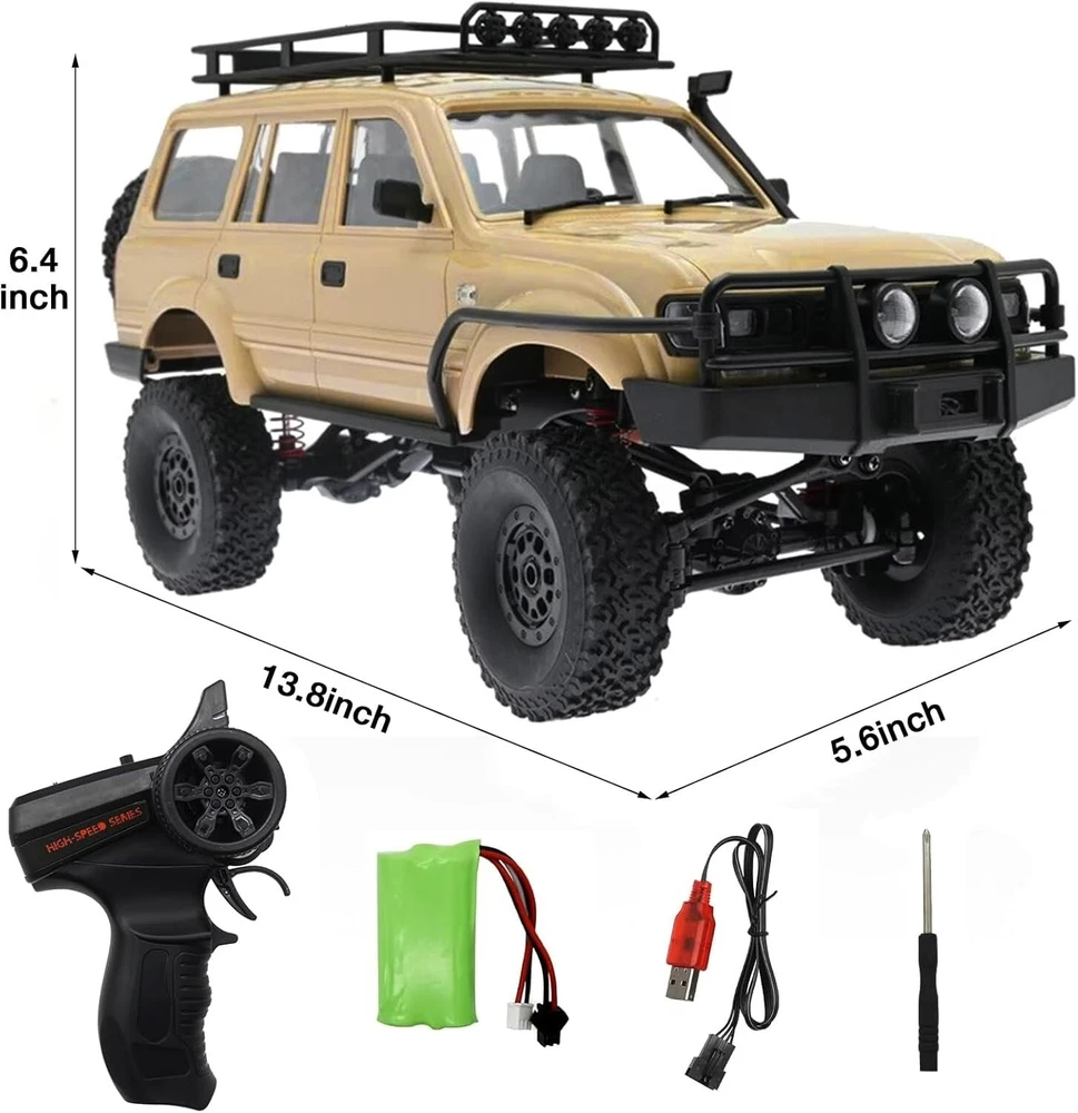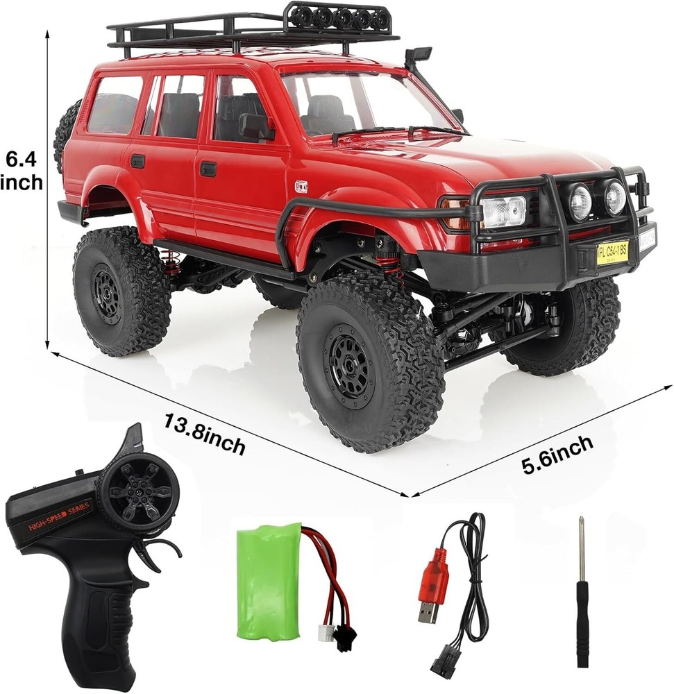 What's new in the C54-1 RTR? 25g steering servo 260 motor New revised gearbox, higher overhang with counter-rotating output New shock design New chassis design Chassis linkages to reduce wheel binding Front panhard link setup Specification: Item No.: C54-1 model: 1/16 Transmitter Frequency: 2.4G Channel: 4CH Power System: 4WD Motor: Brush Motor Battery:2x1.5V AA battery(not included) Car Battery: 7.4V /500mAh Charging method: USB charging Duration: 25 minutes RED Remote Control distance: Above 35m Car Size: 35X14X16cm Upgraded Chassis & Shock Absorbing System Large hidden Battery Box Big Off-road Tires On Apr 21, 2025 at 19:57:52 PDT, seller added the following information: