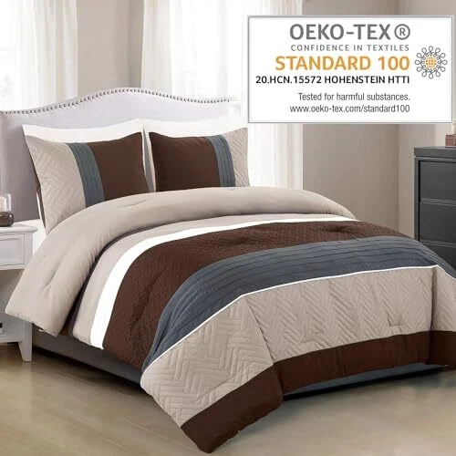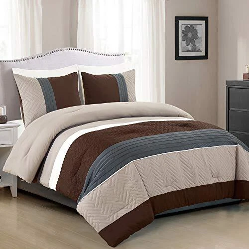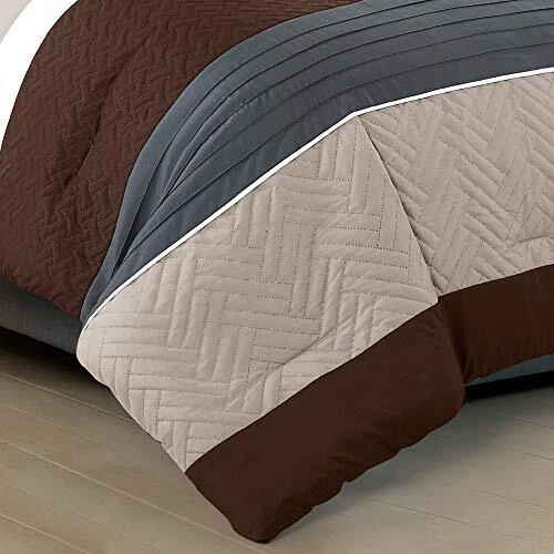 Return Policy Fast Delivery Trusted seller WPM 3 Piece Modern Design King Comforter Set. Multicolor Grey/Coffee Brown/Beige Taupe Color All Season Down Alternative Bedding Decor- Leni (King) Product Description DESIGN: Modern Multi Color Comforter will bring sleek clean modern theme to your Bedroom. Coordinate with matching Pillow Shams and complete your bed to a multi color brown beige taupe grey Theme Bed Room decor MATERIAL: Made with brushed microfiber Down Alternative Comforter is Soft Light Weight and is not too warm ideal for All Season All Year Use. Decorate your Home with this Sleek Stylish Modern Bedding SIZE: Comes in 3 sizes for you to choose from- Twin, Queen or King Premium Quality Comfort: The comforter is designed for a restful night's sleep. It's crafted from high-quality, soft, and durable materials, ensuring that you're wrapped in comfort while you slumber. This high-quality bed set is good for any home, farmhouse, ranch home modern theme Bedroom. Made in OEKO-TEX Standard 100 factory, an independent certification system that stands for customer confidence by ensuring textiles are tested for harmful substances and meets high product safety and environmental standards. King Size Comforter is 104 Inch Wide x 90 Inch Long + 2 Pillow Shams 20 x 36 inch Machine wash using cold water, delicate cycle with no bleach. Tumble Dry on low or air dry Shipping Returns Payment Shipping Shipping is FREE to all addresses other than APO/PO boxes in the lower 48 states. All our stock ships from US-based warehouses. Shipped via USPS or UPS (depending on location and package weight) Unless stated otherwise, all orders will ship within 24-72 hours of your payment being processed. Check our feedback to see the great reviews of FAST shipping we offer. Returns Seller does not accept returns Payment We currently accept payment via eBay managed payments only. Once payment is cleared, we will dispatch your shipment within 1-3 business days. Please refer to the "Shipping" tab for more information regarding shipping speed to your destination.
