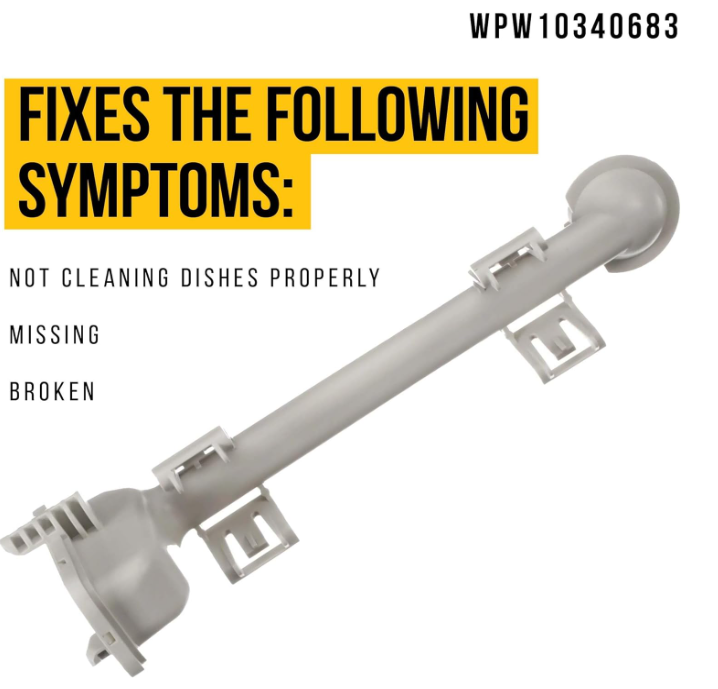 WPW10340683 Middle Spray Arm - A high-quality equivalent for parts WPW10340683, AP6019915, W10340683, 4445294, and PS11753226. The WPW10340683 is a highly durable product that is compatible with Whirlpool, Kenmore, Amana, and Inglis dishwashers. Replacing a part in your appliance can be a simple DIY task. This product can help you to fix the following symptoms: water flow issues, leaks near the middle spray arm connection point, or mineral buildups may reduce water pressure application over time as well. Consult the appliance's manual or search online for step-by-step instructions tailored to your specific model. Prioritize your safety throughout the process. Reach out to customer support if you need further assistance. High-Quality Materials: Our replacement parts are crafted from premium materials to ensure durability and long-lasting performance, providing you with reliable solutions for your home appliances. Wide Compatibility: Designed to fit a variety of popular home appliance models, our replacement parts offer a convenient and versatile solution to keep your appliances in top working condition.