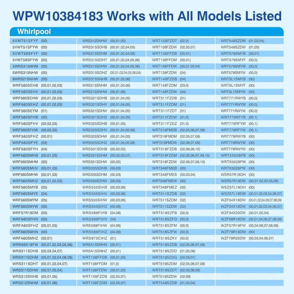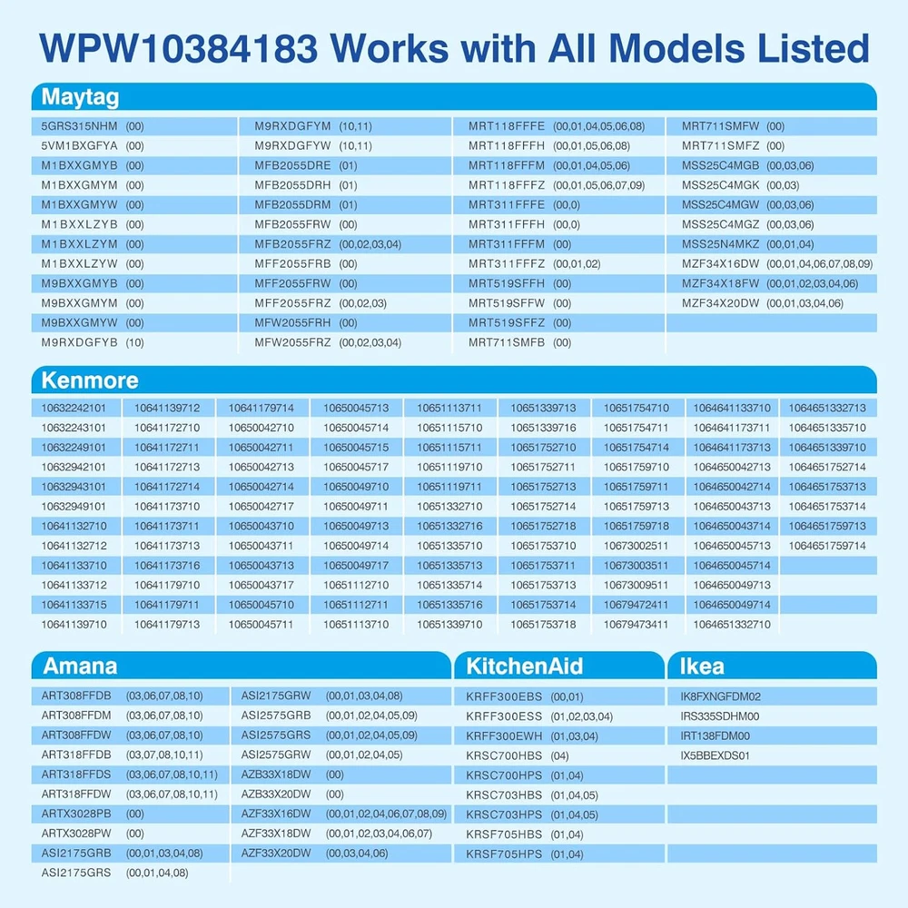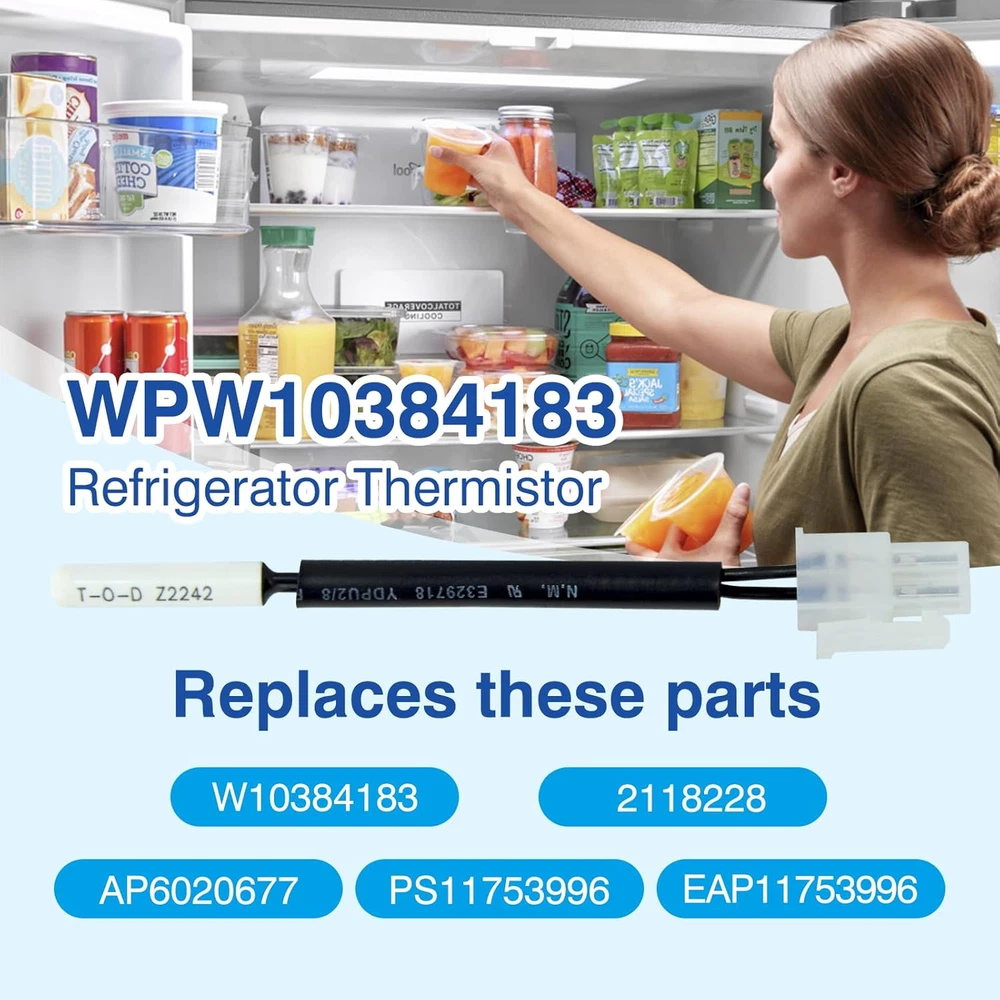 Store New Arrivals Add to Favorite View Feedback Contact WPW10384183 W10384183 Refrigerator Thermistor - Replacement Parts Compatible Description Item model number WPW10384183 Part Number WPW10384183 Batteries Required? No Product Dimensions 4.5 x 0.2 x 0.2 inches Item Weight 0.634 ounces Batteries Included? No 【Product Overview】New Upgrade WPW10384183 Refrigerator Replacement Parts Thermistor.High-quality replacement part for freezer Temperature Sensor. 【Replaceable Models】 WPW10384183 Thermistor accurately replaces the parts of models W10384183 2118228 AP6020677 PS11753996 EAP11753996. 【Compatible Brands】WPW10384183 Freezer Thermistor fits refrigerators from Whirlpool, Kenmore, Maytag, Amana, KitchenAid 【High-quality Products】This thermistor which can transmit temperature change signals more accurately. At the same time, the shell is made of environmentally friendly epoxy resin coating, which is more stable and strong, so that the overall material can withstand temperature changes without damage and is durable. WPW10384183 Thermistor may solve your problems: Freezer is not cooling properly Fridge too warm This Part WPW10384183 Thermistor replaces these parts: W10384183 2118228 AP6020677 PD00035299 PS11753996 EAP11753996 ABOUT US We offer the best prices around on high quality products. Our E-store includes media such as books, movies, music and games while offering electronics, toys, sporting apparel, clothing, tools, general home, garden items and more. SHIPPING We are always working hard to ensure your package arrives as soon as possible. Please understand that some factors like weather, high postal traffic, and the performance of shipping companies are outside of our control. We offer free shipping to the lower 48 states and ship within 5 business days of payment, usually sooner. We do not accept P.O. Boxes. Please provide a physical address. RETURNS We offer a 30-Day Return Policy on items which you are not completely satisfied with. You have the option for a full-refund or an exchange of the item. No returns are available on items shipped outside of the USA. PAYMENT We accept PayPal. CONTACT US This page content is yet to come Please ad us to your favorite seller and visit again later Thank You CUSTOMER SATISFACTION We try our very best to make sure every customer is completely satisfied. If there's a problem, message us! We're happy to help.