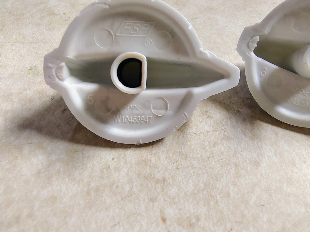 Upgrade your washing machine with this set of genuine Whirlpool, Maytag, Amana, Washer Selector Knobs. These knobs are compatible with multiple brands including Magic Chef, Kenmore, Amana, Maytag, and KitchenAid. The set includes three knobs with a matte finish on durable plastic material. These knobs are suitable for freestanding agitator washing machines and come with easy installation. The white color blends well with any machine and adds a sleek touch to your laundry room. Don't miss out on this opportunity to enhance your washing experience with these high-quality knobs.