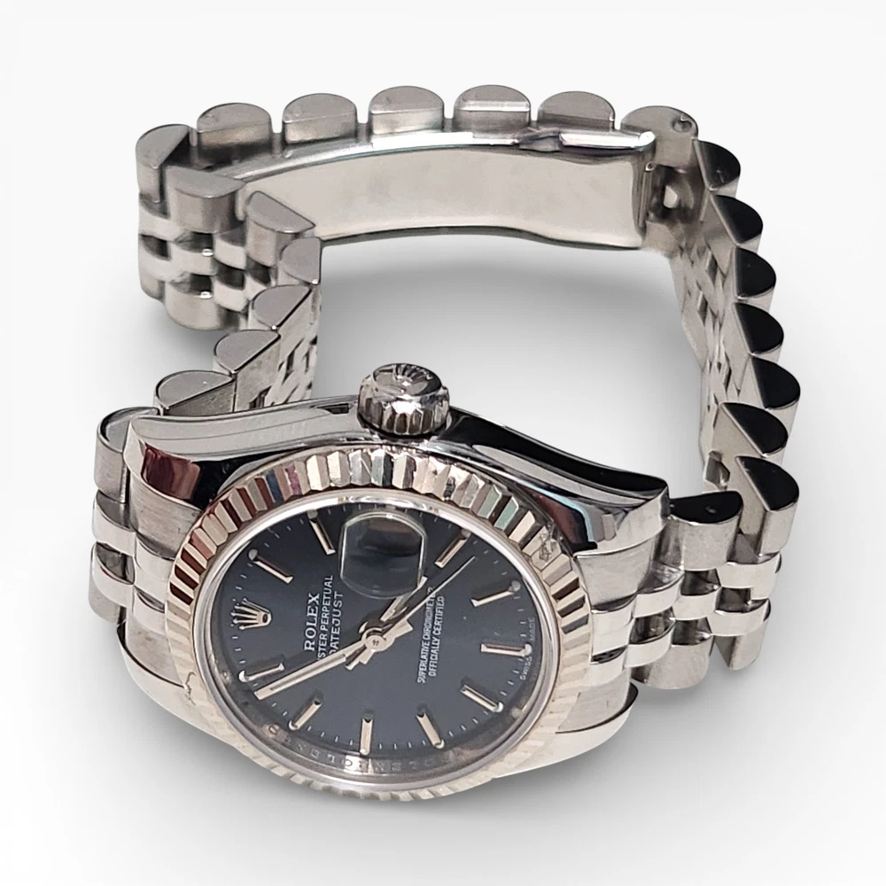 Quick shipping, watch was as pictured, jubilee bracelet links were tight. No service history (none was expected) but my timegrapher app shows it within COSC specs, for what that's worth. Came with a nice box and bag that are worth keeping or could be gifted. They do have eBay branding, but it's not very distracting. Also included were InterWatches warranty card and eBay authentication card.