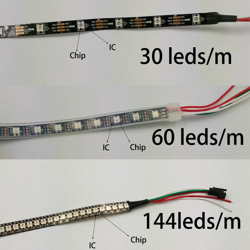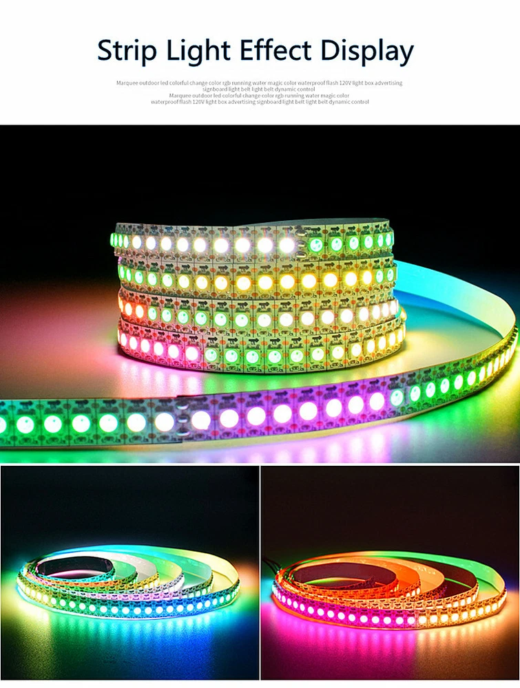 Store Categories Store Categories Charging port For Samsung S For SA Tab For samsung note For iphone For ipad Front camera For IPhone For Samsung Back camera For IPhone For Samsung Camera lens cover For IPhone For Samsung For LG Speaker For IPhone For Samsung For LG LED Tape Charging port For IPhone 7 Back camera for lg Front Camera for LG Charging Port s7 Charging Port For Samsung s7 Touch Pen For LG Back camera for samsung (1) glass lens covr for sm (1) charing Port for lg Battery Cover For lg charger Charging Pad Charging Port For Samsung Sim Card Holder for LG Sim Card Holder For Samsung Loud Speaker For iPhone Battery Cover For LG Charging Port for iPhone Sim Card Holer for IPhone Home Button For Samsung Other WS2812B 5050 RGB Dream Color 1-5m 30/60/144 / 150 300 LEDs Strip Light 5V Individual Addressable Product Description WS2812B 5V 5050 RGB LED Strip 1-5M 30 60 144 150 300 Leds Individual Addressable WS2812B RGB 5050SMD Individual Addressable Pixels/m Flexible Full Color LED Pixel Strip Dream Color IP65 Waterproof Making LED Screen, LED Wall, etc Only DC5V WS2812B 5050 RGB Dream Color 1-5m 30/60/144 / 150 300 LEDs Strip Light 5V Individual Addressable WS2812B 5050 RGB LED Strip 30/60/144 LEDs/M ws5050 IC Individual Addressable 5V WS2812B Strip Light 5m RGB 5050 IC Individual Addressable 150/300 Pixel led DC5V Quality Assurance All LED Strip Lights are fully tested manually in our warehouse Description: 1. The LEDs we used to maufacture the strip are of high quality + supper brightness + reliability. The board is dual and produces much less heat than the cheap single one, which extends the leds’ service life. 2. With the special remote controller, the led lights are capable of performing color changing, flashing, chasing, fading, skipping, scanning, scrolling, by single color or multicolors. As well as switching to a static color you want.(remote controller not include.) 3. Regard Waterproof level: we have nonwaterproof,IP65 available; it is related to where you want to install in; if you are not sure which one in need, we are very glad to help if you contact us first. Installing Tips: 1. It is made with IC WS2812B. One IC controls one LEDs, which forms a circuit. One damaged circuit won’t make the other malfunction. You can cut by the sissors line on the board to DIY per your need. 2. There are two extra wires reaching out on both ends, one is positive and the other is negative. They are for the extra power supply in parralle connection when you want to connect more than one strip.(DC5V power supply not include.) 3. You need an extra power adapter (Min.35W;DC5V) and an extra special remote controller (Min.35W;DC5V) to function the led strip. The listed item is strip only. Specifications: Color:RGB Dream Color / Multi-color Model: SMD5050-WS2812B IC Type: WS2812B Number of Lights: 144LEDs (35W/1M; 0.24W/LED) Number of Lights:150LEDs (36W/5m; 0.24W/LED) Number of Lights:300LEDs (Wattage Required: 72W/5m; 0.24W/LED) Strip Long: 1M/5M PCB Board: White Voltage Required: DC5V Type: Indoor/Outdoor Note: 1.Waterproof IP65 Tube Coverd. Can bear water vapour and rain drops; Can be close to water but can’t be put under water for long. Strip Back: Non-sticky; You need fix it by clips. 3.Non-Waterproof / IP30 , Strip Back: Sticky Strip Width: Width: 1M 144leds waterproof IP65 : 14mm 1M 144leds non-waterproof: 12mm 5M 150leds waterproof IP65 : 12mm 5M 150leds non-waterproof : 10mm 5M 300leds waterproof IP5 : 12mm 5M 300leds non-waterproof : 10mm Compati ble with: Home DIY lights. Cove lighting. Automotive lighting. Decorative lights for party, holiday, event, show, exhibition, park,garden. Special light effect for art gallery and glass-made items. Architectural lights for canopy, corridor, window, archway. Commercial lighting decoration:Hotel/Club/KTV Backlight or edge lighting for signage. Camp Lighting. Boat lighting or decoration. Package Include: Only 1 Roll LED Strip .(Not include power supply and controller.) Copyright © 2021 Dianxiaomi