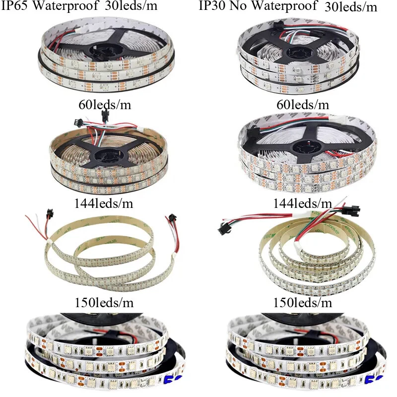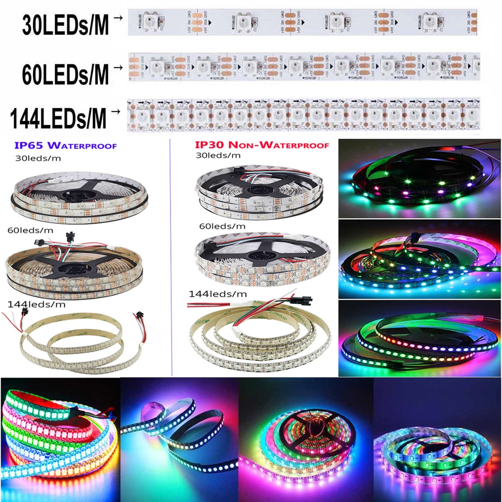 WS2812B 5V 5050 RGB LED Strip 1-5M 30 60 144 150 300 Leds Individual Addressable