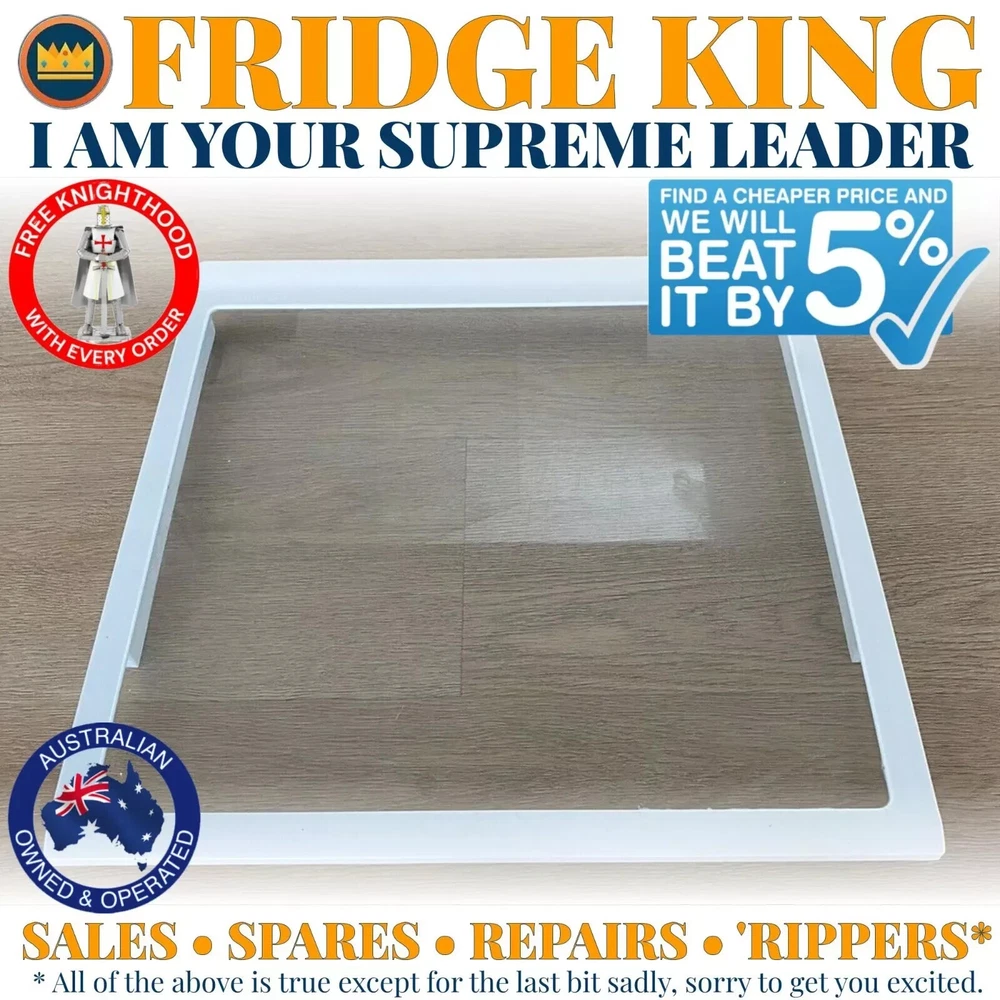 FRIDGE KING! FRIDGE KING! I am the Fridge King of Coolum Beach - bow down to your supreme leader and welcome to my eBay castle! For sale is this genuine Westinghouse fridge side / compartment glass shelf which fits all models starting WSE6070 and WSE6100 - and is compatible with Electrolux, Simpson and Kelvinator - see full list below! Description The glass shelf that fits halfway up the fridge side / compartment - above the crispers but beneath the deli drawer if that's at the top. See video! Key Details Width: 40.5 cm Height: 39.2 cm Depth: 5.0 cm Colour: White / clear Material: ABS plastic / glass MPN / Part number(s) 1445675 (Westinghouse v1) 1461061 (Westinghouse v2 - with lip at rear) 1448602 (Westinghouse v3 - with lip at rear) 1596283 (Big Warehouse Spares - with lip at rear) W0087275 (Wholesale Appliance Supplies v1) W0379880 (Wholesale Appliance Supplies v2) I also stock parts for all Westinghouse fridges with model numbers starting WSE6070, WSE6100, WSE6970 and WSE7000 and can ship to any kingdom in the world! All the precious things are having a party in my parts palace here: https://www.ebay.com.au/usr/fridge_king I am a fair, merciful king and try my best to be the cheapest bulk seller on eBay. If you find the same part cheaper but desire to show your allegiance to the crown I will beat it by 5%. I can also give the following discounts: 10% when you buy 2 items 20% when you buy 3 items 30% when you buy 4+ items ALL HAIL THE THE FAIR MERCIFUL FRIDGE KING OF COOLUM BEACH! Feel free to message your sovereign for the following reasons: If you’re not sure if it fits your fridge If you need something different To consider marriage to your eldest daughter Anything else I will then use my god-appointed fridge superpowers to solve thy problem and send a wench to the dungeon to dispatch your item. If you’re really bored, you can also follow me on instagram @the_fridge_king THERE CAN BE ONLY ONE! Full model list (deep breath): WSE6070PA WSE6070PA* WSE6070PA*1 WSE6070PA*2 WSE6070PA*3 WSE6070PA*4 WSE6070PA*5 WSE6070PA*6 WSE6070PA*7 WSE6070PA*8 WSE6070PA*9 WSE6070PB WSE6070PB* WSE6070PB*1 WSE6070PB*2 WSE6070PB*3 WSE6070PB*4 WSE6070PB*5 WSE6070PB*6 WSE6070PB*7 WSE6070PB*8 WSE6070PB*9 WSE6070PE WSE6070PF WSE6070SA WSE6070SA* WSE6070SA*1 WSE6070SA*2 WSE6070SA*3 WSE6070SA*4 WSE6070SA*5 WSE6070SA*6 WSE6070SA*7 WSE6070SA*8 WSE6070SA*9 WSE6070SB WSE6070SB* WSE6070SB*1 WSE6070SB*2 WSE6070SB*3 WSE6070SB*4 WSE6070SB*5 WSE6070SB*6 WSE6070SB*7 WSE6070SB*8 WSE6070SB*9 WSE6070SE WSE6070SF WSE6070WA WSE6070WA* WSE6070WA*1 WSE6070WA*2 WSE6070WA*3 WSE6070WA*4 WSE6070WA*5 WSE6070WA*6 WSE6070WA*7 WSE6070WA*8 WSE6070WA*9 WSE6070WB WSE6070WB* WSE6070WB*1 WSE6070WB*2 WSE6070WB*3 WSE6070WB*4 WSE6070WB*5 WSE6070WB*6 WSE6070WB*7 WSE6070WB*8 WSE6070WB*9 WSE6070WE WSE6070WF WSE6100PA WSE6100PA* WSE6100PA*1 WSE6100PA*2 WSE6100PA*3 WSE6100PA*4 WSE6100PA*5 WSE6100PA*6 WSE6100PA*7 WSE6100PA*8 WSE6100PA*9 WSE6100PB WSE6100PB* WSE6100PB*1 WSE6100PB*2 WSE6100PB*3 WSE6100PB*4 WSE6100PB*5 WSE6100PB*6 WSE6100PB*7 WSE6100PB*8 WSE6100PB*9 WSE6100PE WSE6100PF WSE6100SA WSE6100PS* WSE6100SA*1 WSE6100SA*2 WSE6100SA*3 WSE6100SA*4 WSE6100SA*5 WSE6100SA*6 WSE6100SA*7 WSE6100SA*8 WSE6100SA*9 WSE6100SB WSE6100SB* WSE6100SB*1 WSE6100SB*2 WSE6100SB*3 WSE6100SB*4 WSE6100SB*5 WSE6100SB*6 WSE6100SB*7 WSE6100SB*8 WSE6100SB*9 WSE6100SE WSE6100SF WSE6100WA WSE6100WA* WSE6100WA*1 WSE6100WA*2 WSE6100WA*3 WSE6100WA*4 WSE6100WA*5 WSE6100WA*6 WSE6100WA*7 WSE6100WA*8 WSE6100WA*9 WSE6100WB WSE6100WB* WSE6100WB*1 WSE6100WB*2 WSE6100WB*3 WSE6100WB*4 WSE6100WB*5 WSE6100WB*6 WSE6100WB*7 WSE6100WB*8 WSE6100WB*9 WSE6100WE WSE6100WF