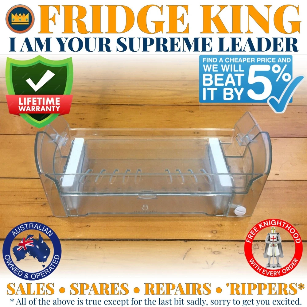 FRIDGE KING! FRIDGE KING! I am the Fridge King of Coolum Beach - bow down to your supreme leader and welcome to my eBay castle! For sale is this near-new condition, genuine Westinghouse dairy shelf / compartment which fits all Westinghouse side by side fridges models starting WSE6070 and WSE6100 - see full list below! Part number: 1596178 (shelf) + 1445826 (drawer) Width: 39cm Depth: 15cm Height: 11cm Description: The dairy shelf that goes at the top of the fridge side door - it has a drawer for cheese underneath and you can buy the lid separately here: https://www.ebay.com.au/itm/404165931563 I also stock parts for all Westinghouse side by side fridges with model numbers starting WSE6070, WSE6100, WSE6970 and WSE7000 and can ship to any kingdom in the world! All the precious things are having a party in my parts palace here: https://www.ebay.com.au/usr/fridge_king I am a fair, merciful king and try my best to be the cheapest bulk seller on eBay. If you find the same part cheaper but desire to show your allegiance to the crown I will beat it by 5%. I can also give the following discounts: 10% when you buy 2 items 20% when you buy 3 items 30% when you buy 4+ items ALL HAIL THE THE FAIR MERCIFUL FRIDGE KING OF COOLUM BEACH! Feel free to message your sovereign for the following reasons: If you’re not sure if it fits your fridge If you need something different To consider marriage to your eldest daughter Anything else I will then use my god-appointed fridge superpowers to solve thy problem and send a wench to the dungeon to dispatch your item. If you’re really bored, you can also follow me on instagram @the_fridge_king THERE CAN BE ONLY ONE! *** PLEASE PLEASE PLEASE do not buy this part if you need it in brand new condition - I am a fridge king not a fridge wizard! *** All these parts are used and in used condition. If you require brand new condition, there’s a really simple way to do this - it’s called “paying full price and buying brand new”. These items are a fraction of the new price and as eBay states: “The item may have some signs of cosmetic wear, but it is fully operational and functions as intended.” In many cases, the item in the picture is an incredibly hard to find used part that has been discontinued by the manufacturer. As a result, it may not be the exact one sent out as I have thousands for sale and I cannot take pictures of every single one. And yes, the same lunatics have seriously said that I need to do this. When someone who needs brand new condition buys a used part, they get upset by a small scuff, they lodge a return, I get sad and lose money paying for said return, they then leave me a bad review and in the ultimate sacrifice, a fridge king fairy dies. And no one wants that on their conscience. Full model list (deep breath): WSE6070PA WSE6070PA* WSE6070PA*1 WSE6070PA*2 WSE6070PA*3 WSE6070PA*4 WSE6070PA*5 WSE6070PA*6 WSE6070PA*7 WSE6070PA*8 WSE6070PA*9 WSE6070PB WSE6070PB* WSE6070PB*1 WSE6070PB*2 WSE6070PB*3 WSE6070PB*4 WSE6070PB*5 WSE6070PB*6 WSE6070PB*7 WSE6070PB*8 WSE6070PB*9 WSE6070PE WSE6070PF WSE6070SA WSE6070SA* WSE6070SA*1 WSE6070SA*2 WSE6070SA*3 WSE6070SA*4 WSE6070SA*5 WSE6070SA*6 WSE6070SA*7 WSE6070SA*8 WSE6070SA*9 WSE6070SB WSE6070SB* WSE6070SB*1 WSE6070SB*2 WSE6070SB*3 WSE6070SB*4 WSE6070SB*5 WSE6070SB*6 WSE6070SB*7 WSE6070SB*8 WSE6070SB*9 WSE6070SE WSE6070SF WSE6070WA WSE6070WA* WSE6070WA*1 WSE6070WA*2 WSE6070WA*3 WSE6070WA*4 WSE6070WA*5 WSE6070WA*6 WSE6070WA*7 WSE6070WA*8 WSE6070WA*9 WSE6070WB WSE6070WB* WSE6070WB*1 WSE6070WB*2 WSE6070WB*3 WSE6070WB*4 WSE6070WB*5 WSE6070WB*6 WSE6070WB*7 WSE6070WB*8 WSE6070WB*9 WSE6070WE WSE6070WF WSE6100PA WSE6100PA* WSE6100PA*1 WSE6100PA*2 WSE6100PA*3 WSE6100PA*4 WSE6100PA*5 WSE6100PA*6 WSE6100PA*7 WSE6100PA*8 WSE6100PA*9 WSE6100PB WSE6100PB* WSE6100PB*1 WSE6100PB*2 WSE6100PB*3 WSE6100PB*4 WSE6100PB*5 WSE6100PB*6 WSE6100PB*7 WSE6100PB*8 WSE6100PB*9 WSE6100PE WSE6100PF WSE6100SA WSE6100PS* WSE6100SA*1 WSE6100SA*2 WSE6100SA*3 WSE6100SA*4 WSE6100SA*5 WSE6100SA*6 WSE6100SA*7 WSE6100SA*8 WSE6100SA*9 WSE6100SB WSE6100SB* WSE6100SB*1 WSE6100SB*2 WSE6100SB*3 WSE6100SB*4 WSE6100SB*5 WSE6100SB*6 WSE6100SB*7 WSE6100SB*8 WSE6100SB*9 WSE6100SE WSE6100SF WSE6100WA WSE6100WA* WSE6100WA*1 WSE6100WA*2 WSE6100WA*3 WSE6100WA*4 WSE6100WA*5 WSE6100WA*6 WSE6100WA*7 WSE6100WA*8 WSE6100WA*9 WSE6100WB WSE6100WB* WSE6100WB*1 WSE6100WB*2 WSE6100WB*3 WSE6100WB*4 WSE6100WB*5 WSE6100WB*6 WSE6100WB*7 WSE6100WB*8 WSE6100WB*9 WSE6100WE WSE6100WF