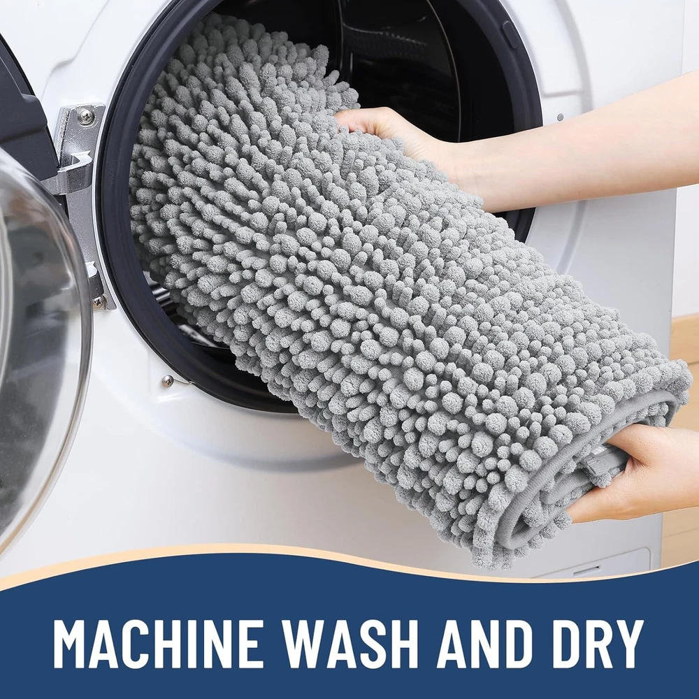 Chenille Ultra Plush and Comfortable: Experience ultimate comfort with luxury bathroom rugs that feature a plush 0.86-inch microfiber pile. Designed for a soft, cozy feel, these rugs soothe tired feet and provide a warm barrier against cold floors. Every step out of the shower or bathtub will be met with a cushioned, luxurious sensation Water Absorbent: Crafted with deep piles of ultra-soft microfiber shags, our shaggy bath rugs excel in absorption. The thick chenille fabric swiftly absorbs water, stopping floors from getting wet as you step out of the bath, shower, or prepare by the sink. Moisture is effectively trapped within the mat's high pile, ensuring rapid and thorough drying, leaving your bath rug clean and fresh Non Slip Backing: The chenille bathroom rugs are equipped with a non-slip bottom made of sturdy mesh PVC material, ensuring the bath mat remains in place and stops shifting or skidding. WARNING: Place mat on CLEAN DRY SMOOTH FLOOR only. Keep bottom of mat dry. Before using bath carpet, test with foot to ensure it doesn't move Easy to Clean: Cleaning these chenille bath mats is a breeze. Simply toss them in the washing machine with cold water and a mild detergent, then either tumble dry on low speed or hang them to air dry. Even after multiple washes, the color of the bathroom rug remains vibrant and won't fade. Thanks to the soft microfiber material, the rugs won't shrink or become rough after washing, ensuring they maintain their plushness for a long time Create Your Home Oasis: The U-shaped toilet mat serves several functions in a bathroom setting. Its design is tailored to fit around the base of the toilet, offering cushioning for your feet while using the toilet. This can enhance comfort, especially during longer bathroom sessions. These toilet mats come in various colors, adding a decorative touch to the bathroom and coordinating with other bath accessories to create a cohesive look Previous page Next page