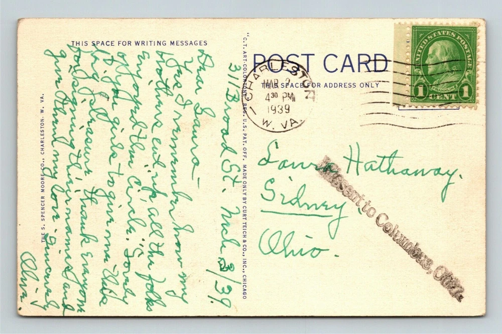 Subject: Cities & Towns Country/Region of Manufacture: United States City: West Virginia Original/Licensed Reprint: Original Theme: Cities & Towns Postage Condition: Posted Continent: North America Unit of Sale: Single Unit Region: West Virginia Era: Linen Type: Linen Postcard Country: USA