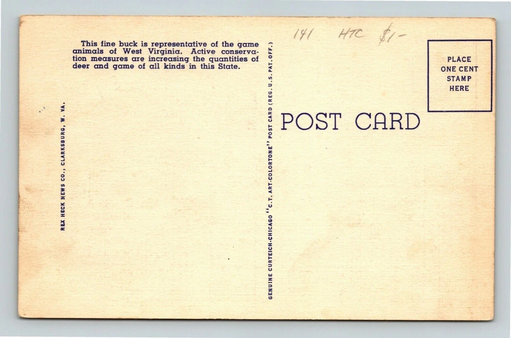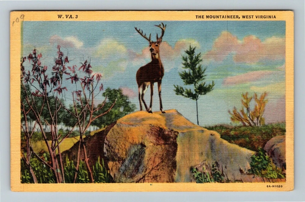 WV-West Virginia, The Mountaineer, Deer In The Woods, Vintage Postcard