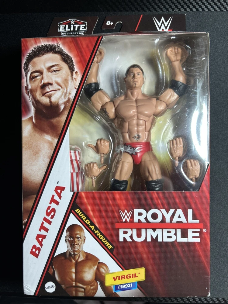 Barista mattel elite royal rumble 2005 attire figure! Box is in fair shape. (See pics) wrinkle and tear on the top left, bottom left has a bad corner. Box has never been opened.