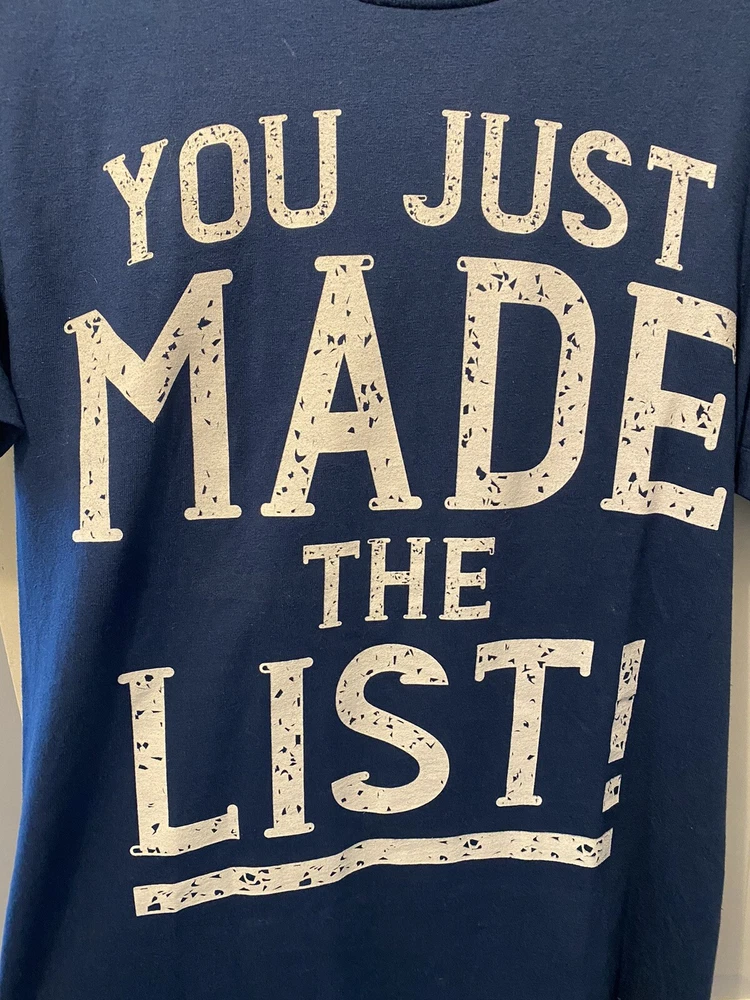 WWE Chris Jericho You Just Made the List Blue Short Sleeve T Shirt Small AEW. Condition is Pre-owned. Shipped with USPS First Class.